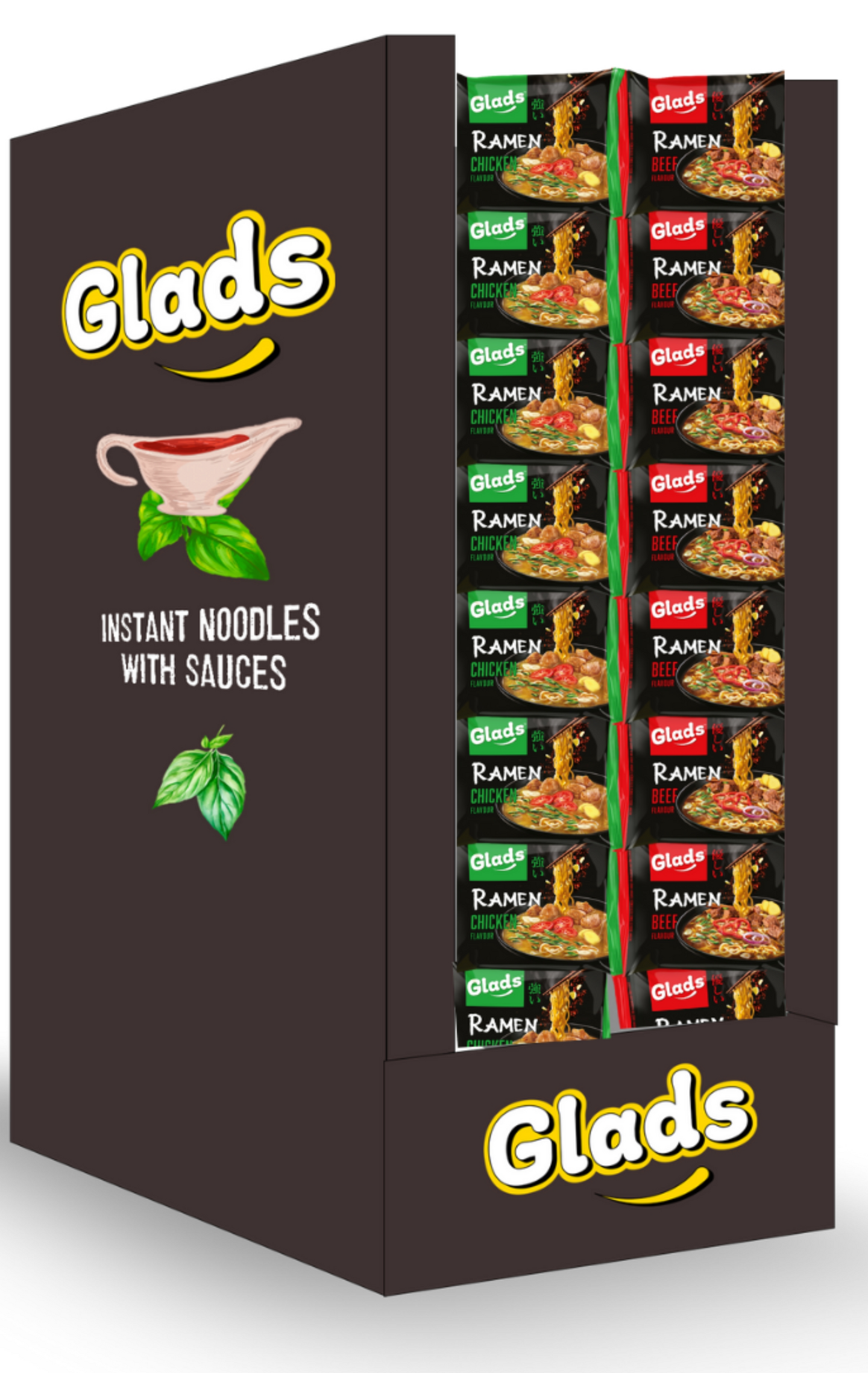 Glads Ramen Pikanuudeli kananmakuinen ja naudanlihanmakuinen lajit 105g 336kpl qpa