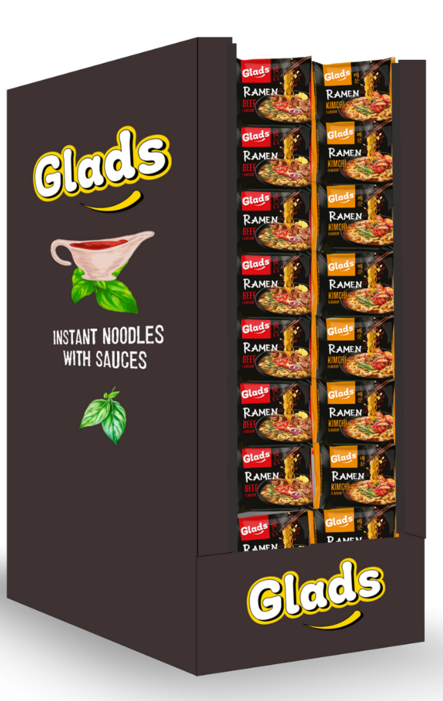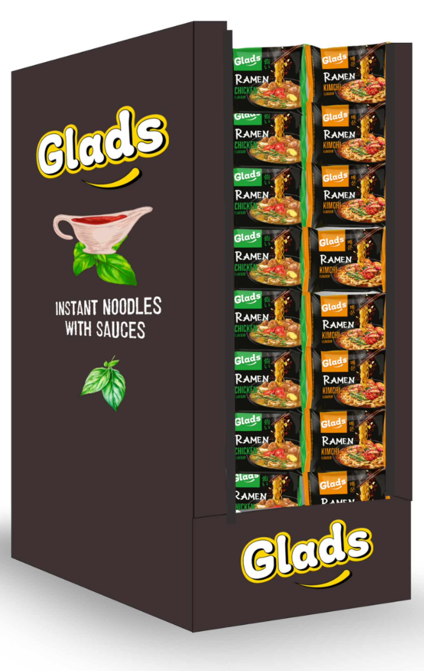 Glads Ramen Pikanuudeli kananmakuinen ja kimchinmakuinen lajit 105g 336kpl qpa