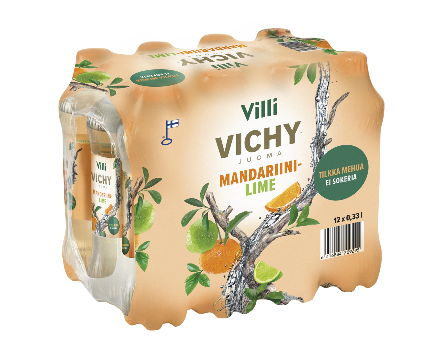 Tuoteperheen uusimmat tulokkaat ovat tilkan mehua sisältävät, sokerittomat Villi Vichy mandariini-lime ja Villi Vichy sitruuna.