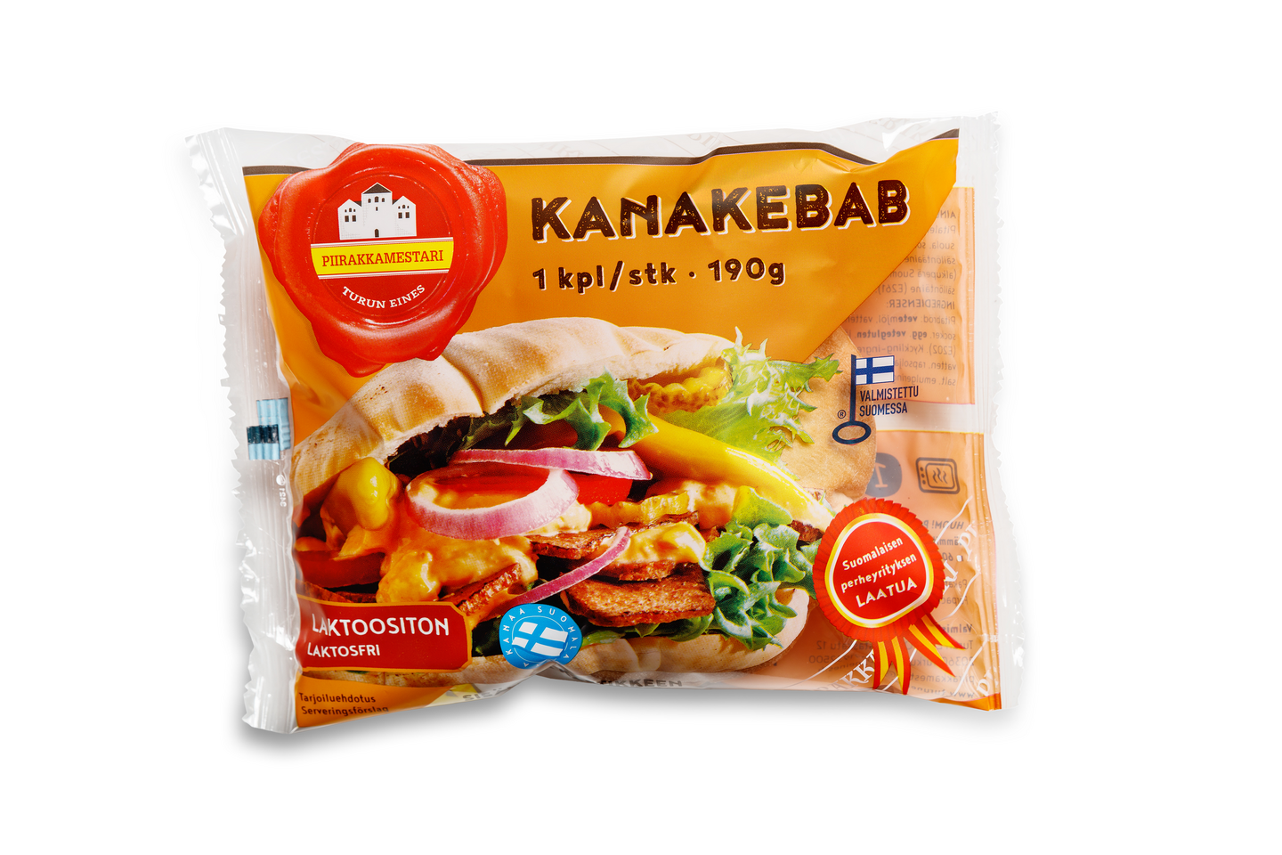 Pitaleipä: [VEHNÄjauho, vesi, kasvimargariini(palmu- ja rypsiöljy), suola, sokeri, KANANMUNA, VEHNÄGLUTEENI, hiiva, leivänparanne, säilöntäaine (E202)] Kana-ainekset: [Kana (71%) (alkuperä Suomi), vesi, rypsiöljy, SOIJAproteiini, mausteet, säilöntaine(E261), suola, emulgointiaine(E450), aromit.
