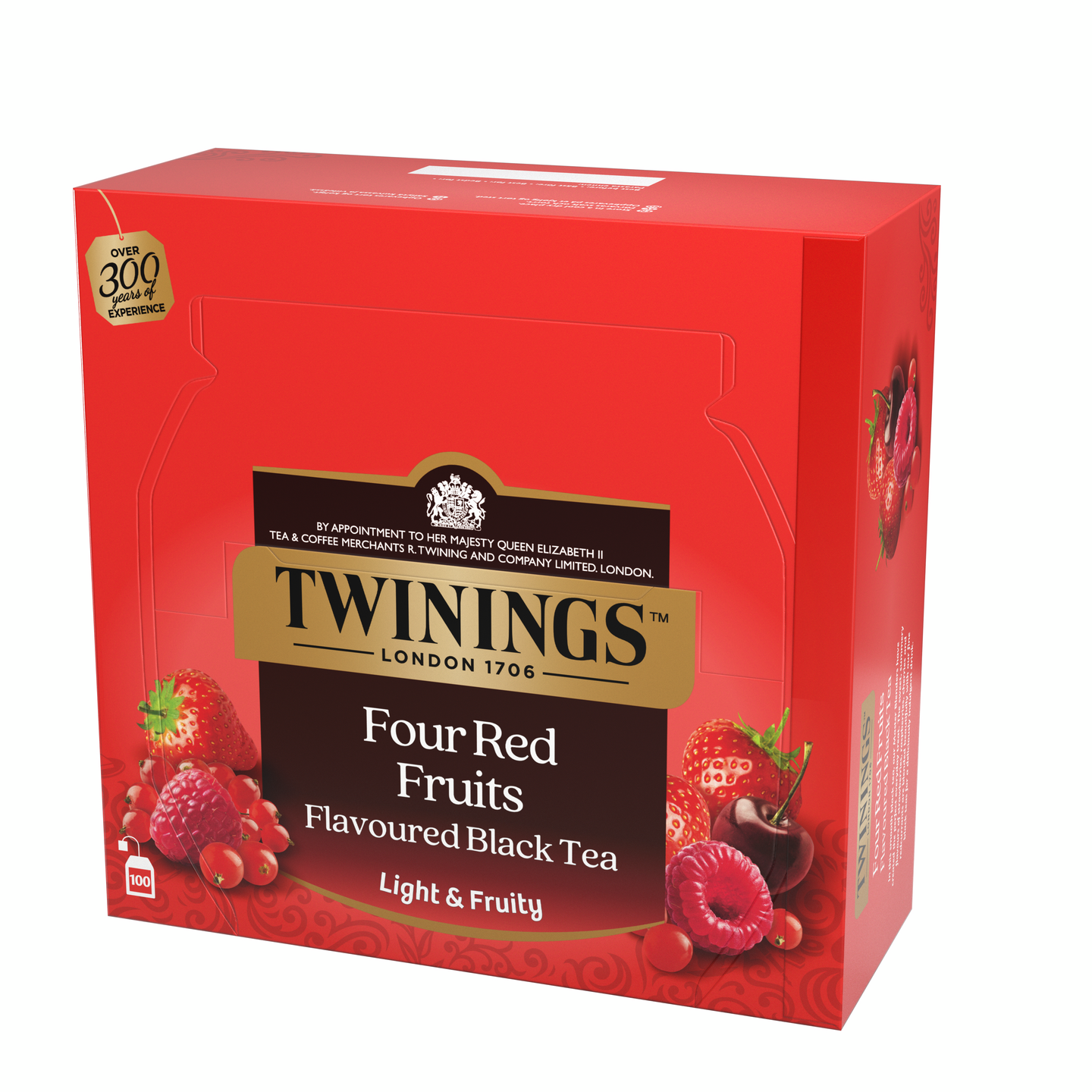 Musta tee, neljä punaisen savun aromia (8%), kirsikkapalat (1%), punaherukat (1%), vadelmapalat (1%), mansikkapalat (1%).