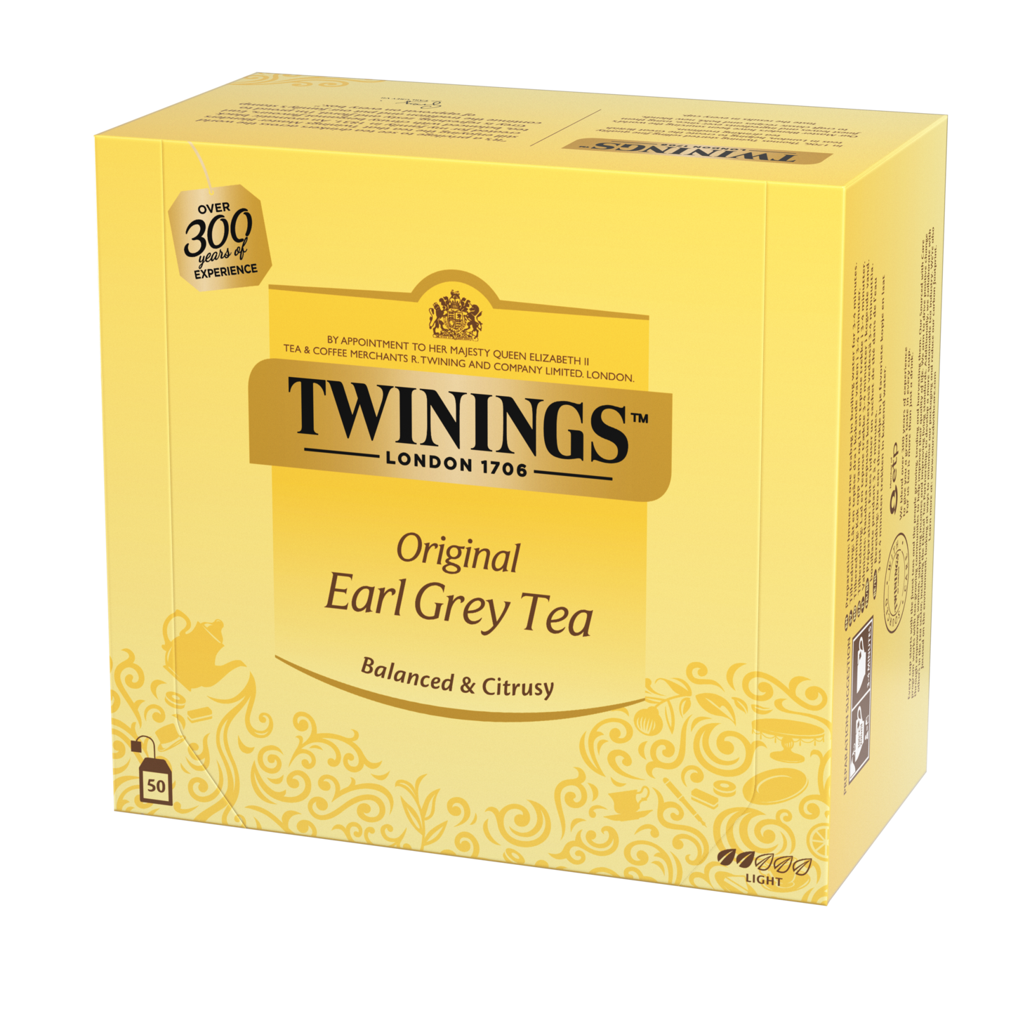 Bergamottiaromilla maustettu musta tee 50 teepussin pakkauksessa. Korkealaatuinen musta tee yhdistettynä raikkaaseen bergamottiaromiin antaa Earl Grey -teelle sille tunnusomaisen kevyen ja raikkaan maun. Ei siis ole mikään ihme, että jaarli Earl Grey II, jonka mukaan sekoitus on nimetty, ihastui siihen ensikerrasta lähtien.