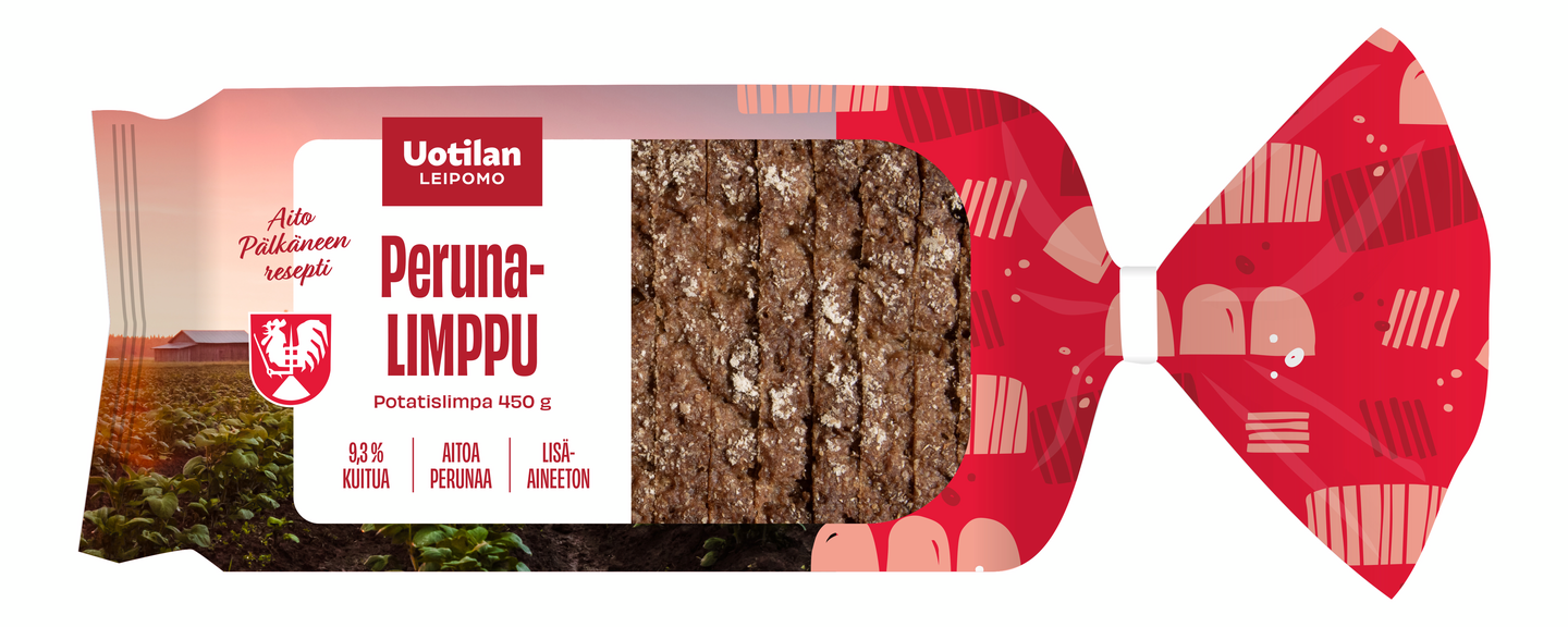 VegaaninenRunsaskuituinen Uotilan Perunalimppu on varma valinta kaikille, jotka haluavat nauttia maukkaasta, puhtaasta ja perinteikkäästä leivästä. Sen maun salaisuus piilee aikaa ja vaivaa vaativassa hapanimellytyksessä. Aidon hämäläisen perinneleivän leivontaan käytetään reilusti aitoa Pietilän perunaa Hattulasta, minkä ansiosta leipä on ihanan mehevä. Leivottu Suomessa ilman lisä- ja säilöntäaineita.