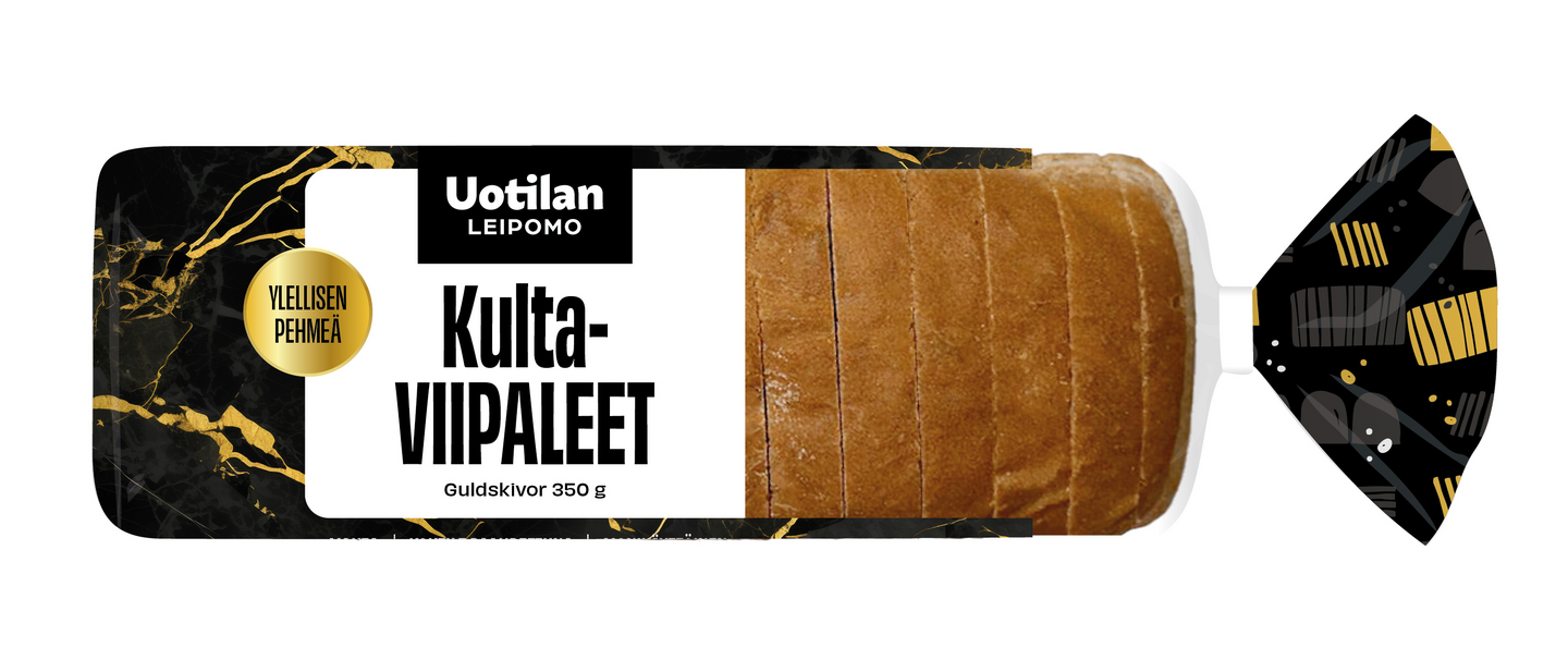 VegaaninenUotilan Kultaviipaleet on suunniteltu aamupalapöytiin, brunsseille ja arjen herkutteluhetkiin. Ilmava ja pehmeä leipä hurmaa kevyellä makeudellaan. Tuote on vegaaninen.