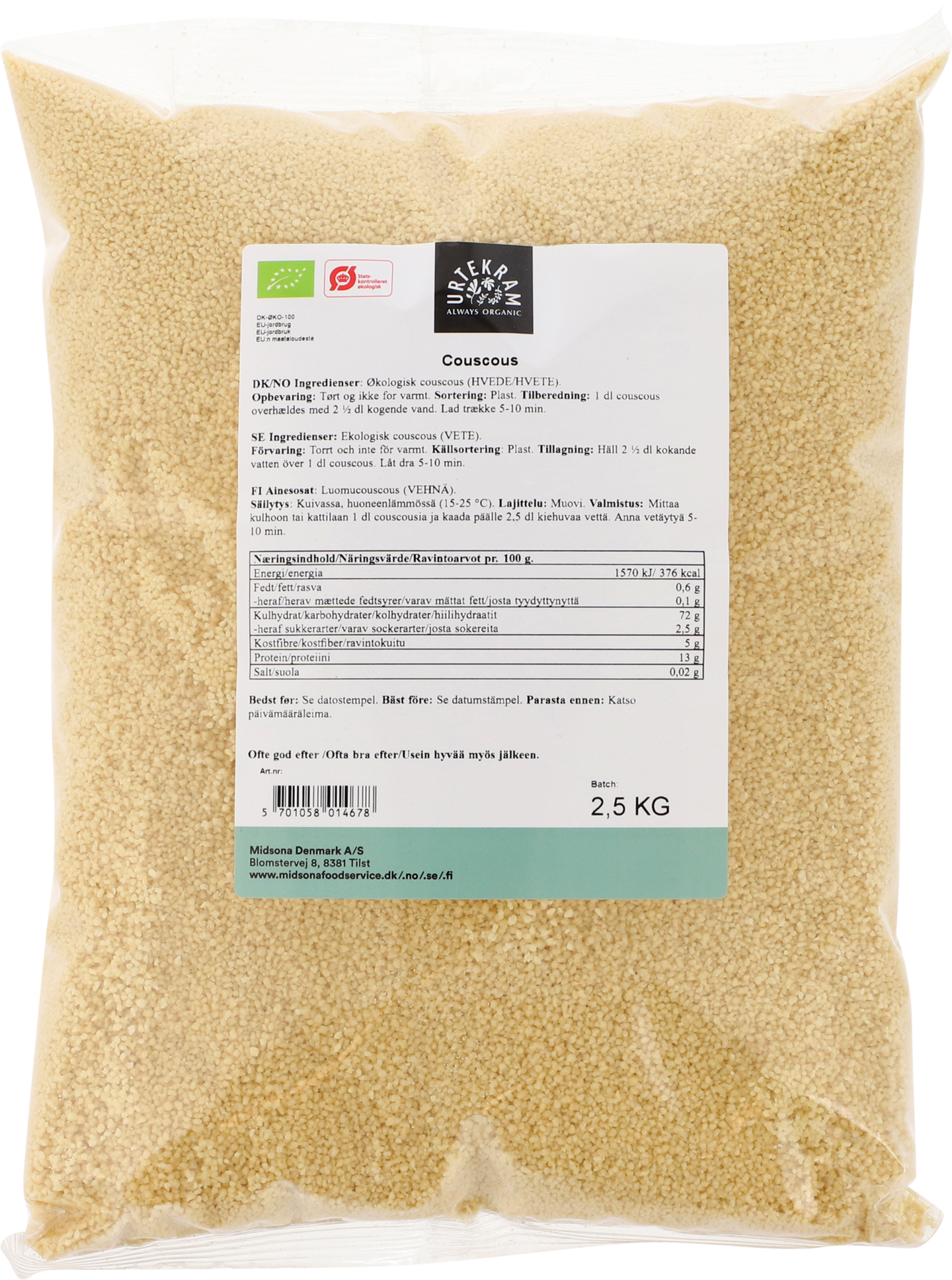 Couscous on valmistettu höyrytetystä, kuivatusta ja rouhitusta luomudurumvehnästä. Sitä käytetään paljon Lähi-idässä ja Pohjois-Afrikassa yhdessä täyteläisten mausteiden tai aromaattisten pataruokien kanssa. Couscous sopii myös kylmiin salaatteihin tuoreen persiljasilpun, tuoreiden tomaattien ja fetajuuston seuraksi. Couscous valmistuu helposti ja nopeasti.