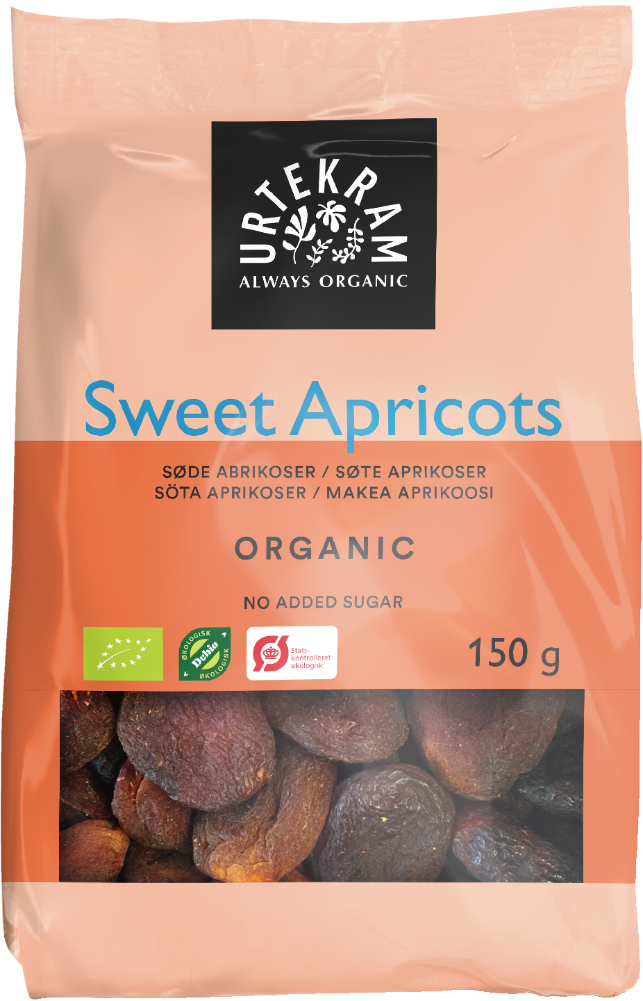 Luomuaprikoosi. Ei lisättyjä sokereita. Sisältää luontaisesti sokereita.