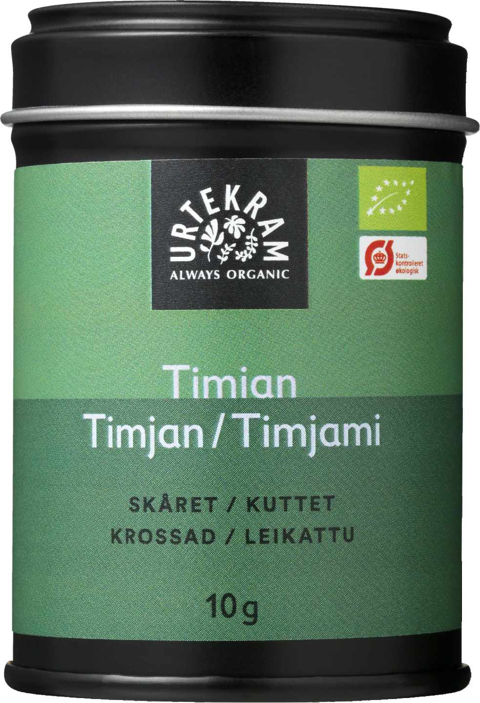 Urtekram timjami on kauniin aromaattinen yrtti, hieman tulisen aromikkaalla maulla.