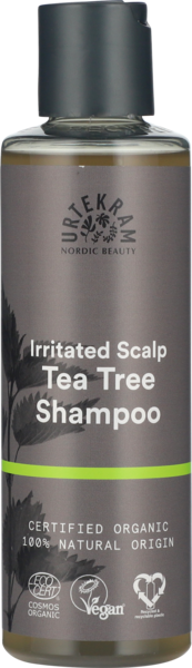 VegaaninenUrtekram Tea Tree shampoo on suunniteltu ärtyneelle ja herkälle hiuspohjalle. Teepuu- ja laventeliöljy sekä magnoliankuoriuute hoitavat ja rauhoittavat herkkää, ärtynyttä hiuspohjaa. Luonnon omat superkosteuttajat aloe vera ja glyseriini antavat hiuspohjalle ja hiuksille runsaasti kosteutta. Luomusertifioitu Ecocert Cosmos Organic -standardin mukaisesti, vegaaninen ja 100 % biohajoava sekä 100 % luonnollista alkuperää oleva koostumus.
