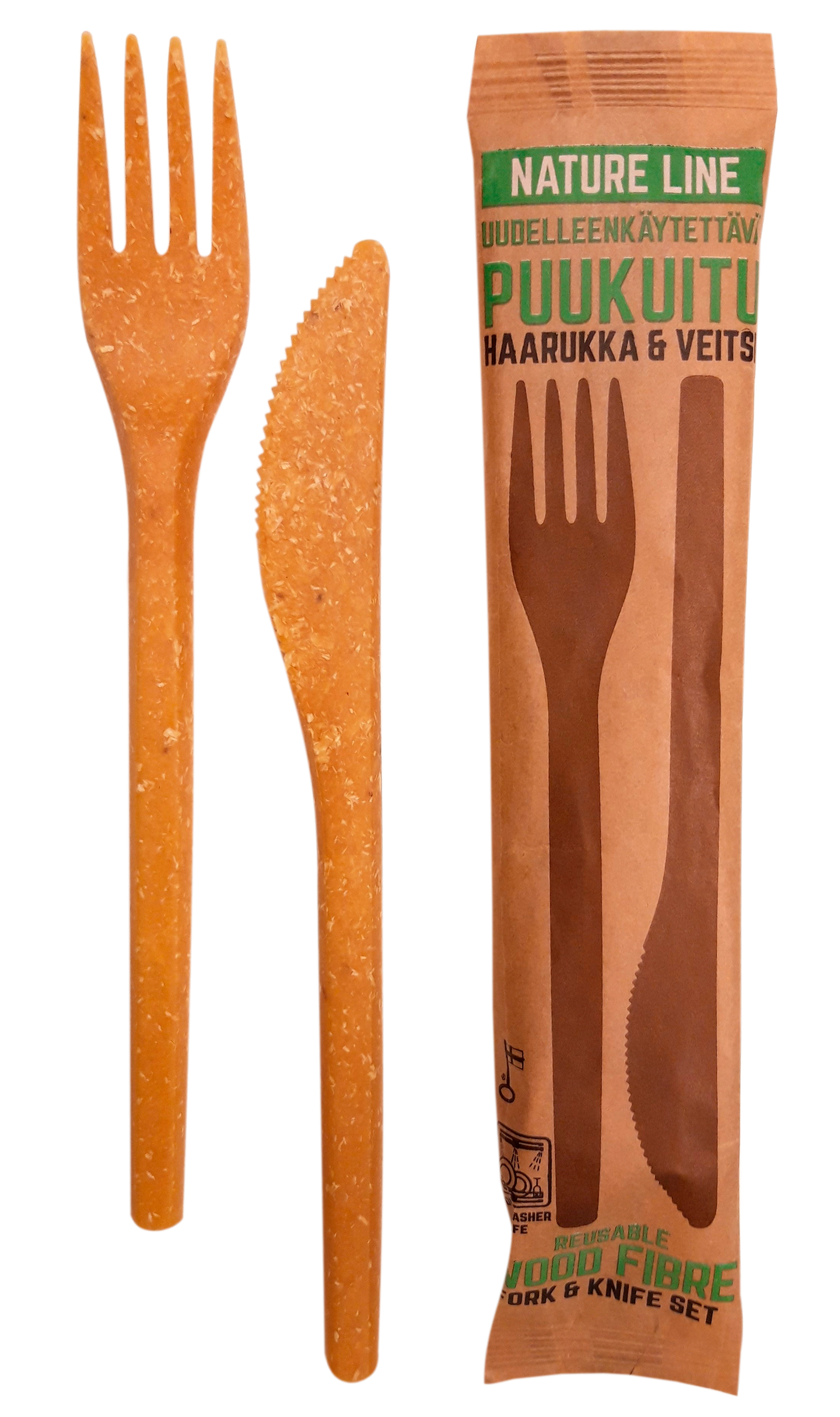 Uudelleenkäytettävä puukuitu haarukka-veitsi setti 1pari