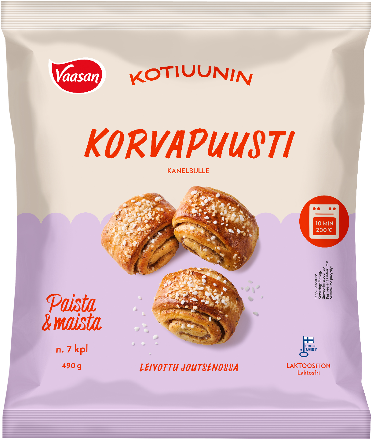 VegaaninenVaasan Kotiuunin Korvapuusti on todellinen klassikkopulla. Leipurimme Joutsenossa näkivät vaivaa, jotta sinun ei tarvitsisi. Pyöräytimme puustimme sopivan kokoisiksi, jotta niitä voi syödä uunituoreena useammankin.
