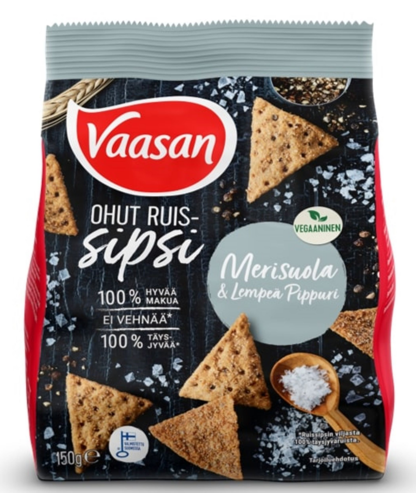 Vaasan Ohut Ruissipsi Merisuola & Lempeä pippuri 150g
