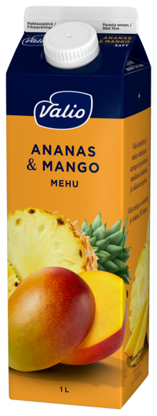 VegaaninenValio ananas-mangomehussa maistuvat eksoottiset hedelmät. Täysmehupitoisuus on 58 %. Sisältää runsaasti C-vitamiinia.