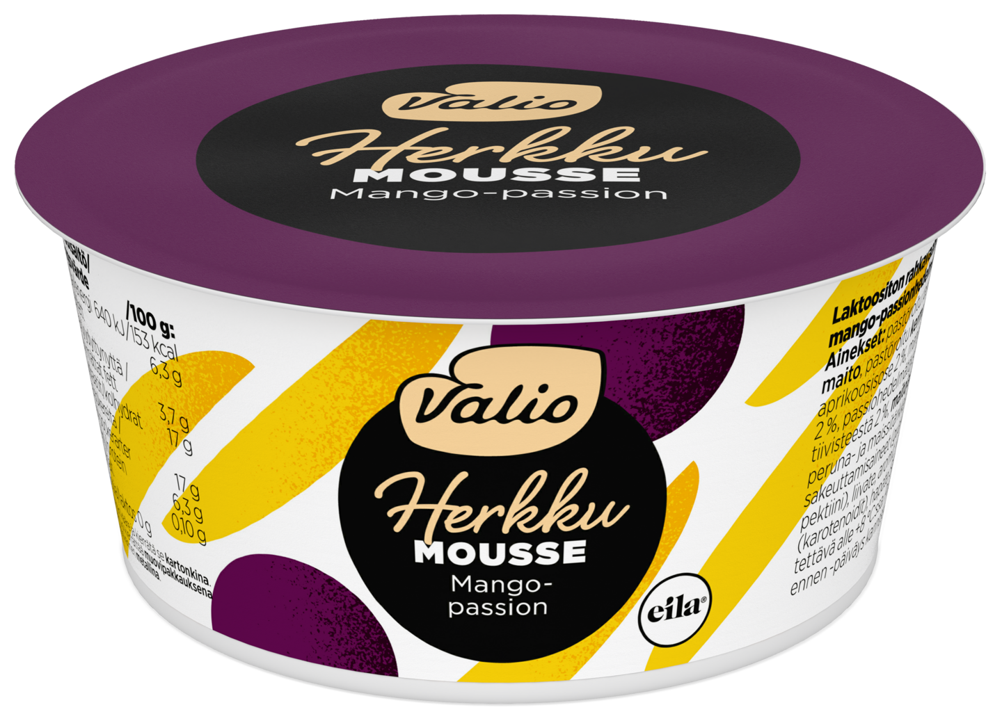 LaktoositonKaipaatko pientä nostetta arjen yläpuolelle? Valio Herkku mousse mango-passion on pehmeän kuohkea ja täyteläinen makuelämys, joka sopii täydellisesti arjen ja viikonlopun pieniin herkkuhetkiin. Valio Herkku mousset on tehty parhaista raaka-aineista, maidosta, kermasta, marjoista ja hedelmistä, ja niiden suussasulava kuohkeus vie mennessään!