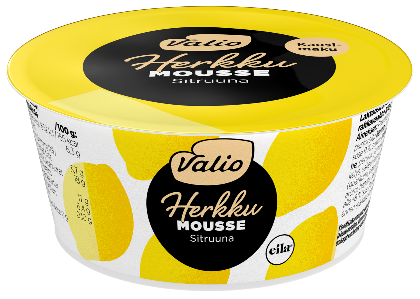 Kaipaatko pientä nostetta arjen yläpuolelle? Valio Herkku moussen kausimaku sitruuna on ihanan raikas, pehmeän kuohkea ja täyteläinen makuelämys, joka sopii täydellisesti pieniin herkkuhetkiin. Valio Herkku mousset on tehty parhaista raaka-aineista, maidosta, kermasta, marjoista ja hedelmistä, ja niiden suussasulava kuohkeus vie mennessään!