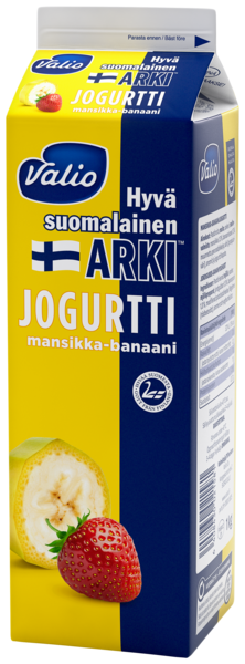 Valio Hyvä suomalainen Arki® jogurtit ovat kotimaisesta maidosta valmistettuja, koko perheelle sopivia jogurtteja arkikäyttöön. Mansikka-banaani on makuyhdistelmä, joka maistuu erityisesti perheen pienimmille.