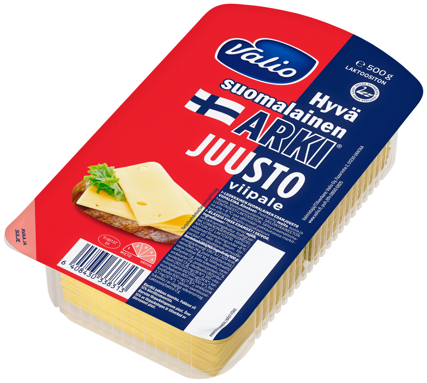 LaktoositonHyvä suomalainen Arki® juusto on mukavan mieto edam-tyylinen juusto, joka maistuu arjessa leivän päällä koko perheelle. Nyt saatavilla myös kätevinä viipaleina. Tuotesarjan juustot ovat laktoosittomia ja säilöntäaineettomia, ja ne valmistetaan Suomessa kotimaisesta maidosta.