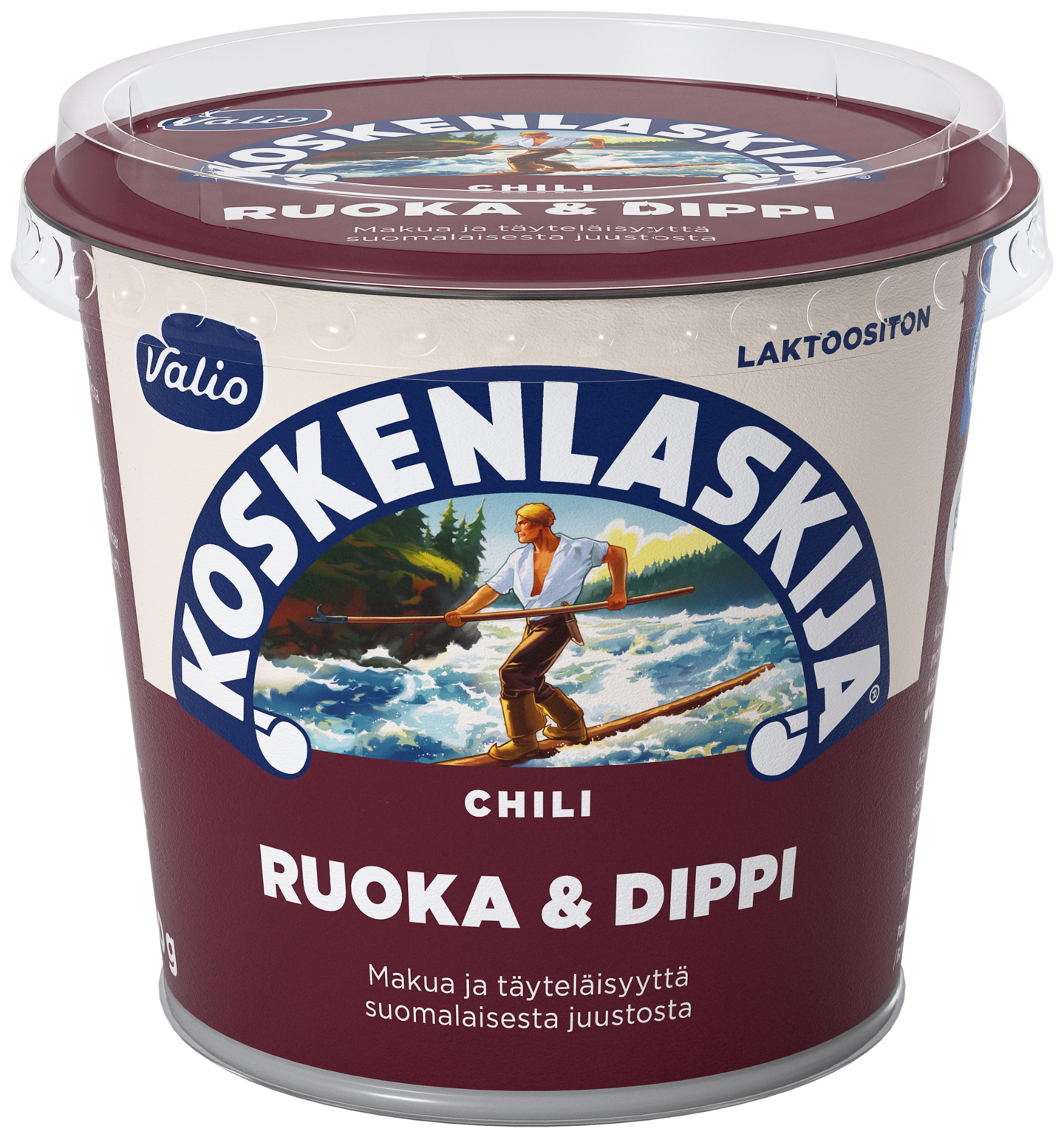 LaktoositonValio Koskenlaskija® Ruoka & Dippi chili on lempeän tulinen juustokastike, joka maistuu herkulliselta kylmänä tai kuumana. Se antaa reilusti juustoista makua ja suussasulavaa täyteläisyyttä mihin ikinä sitä käytätkään! Dippaa, mausta, mehevöitä tai kuorruta. Valio Koskenlaskija® Ruoka & Dippi chili sopii erityisen hyvin texmex-herkkuihin ja hampurilaisiin.