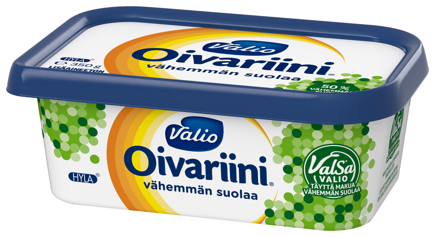 Tarkkailetko suolan määrää? Valio Oivariini® vähemmän suolaa on täynnä tuttua herkullista makua, mutta levitteen suolapitoisuus on markkinoiden matalin. Pienempi suolapitoisuus onnistuu, kun osa tavallisesta suolasta korvataan Valio ValSa® maitosuolalla eli maidon luontaisilla mineraaleilla. Sipaise leivälle, käytä ruuanlaitossa tai leivonnassa – ja nauti. Tämäkin Valio Oivariini® tuote valmistetaan tuoreesta suomalaisesta voista ja pehmeästä rapsiöljystä ilman lisäaineita ja säilöntäaineita ollen luonnollinen valinta koko perheelle.