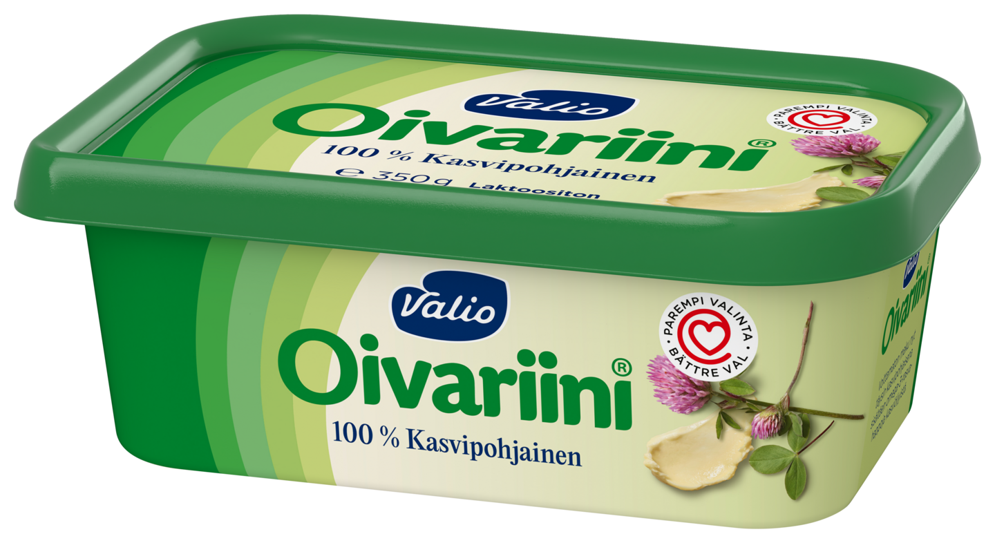 LaktoositonValio Oivariini® kasvipohjainen -levitteessä on tuttu voittamaton maku - nyt täysin kasvipohjaisena. Sydänmerkki kertoo tuoteryhmässään paremmasta valinnasta rasvojen laadun ja suolan määrän suhteen. Kasvipohjaisena tuotteena se sisältää runsaasti omega-3-rasvahappoja. Levitä leivän päälle tai käytä ruoanlaitossa ja leivonnassa tukemaan terveellistä elämäntapaa ja laadukkaiden rasvojen saantia. Kaikki Valio Oivariini® tuotteet valmistetaan ilman säilöntäaineita. Ne ovat helppo valinta koko perheelle.