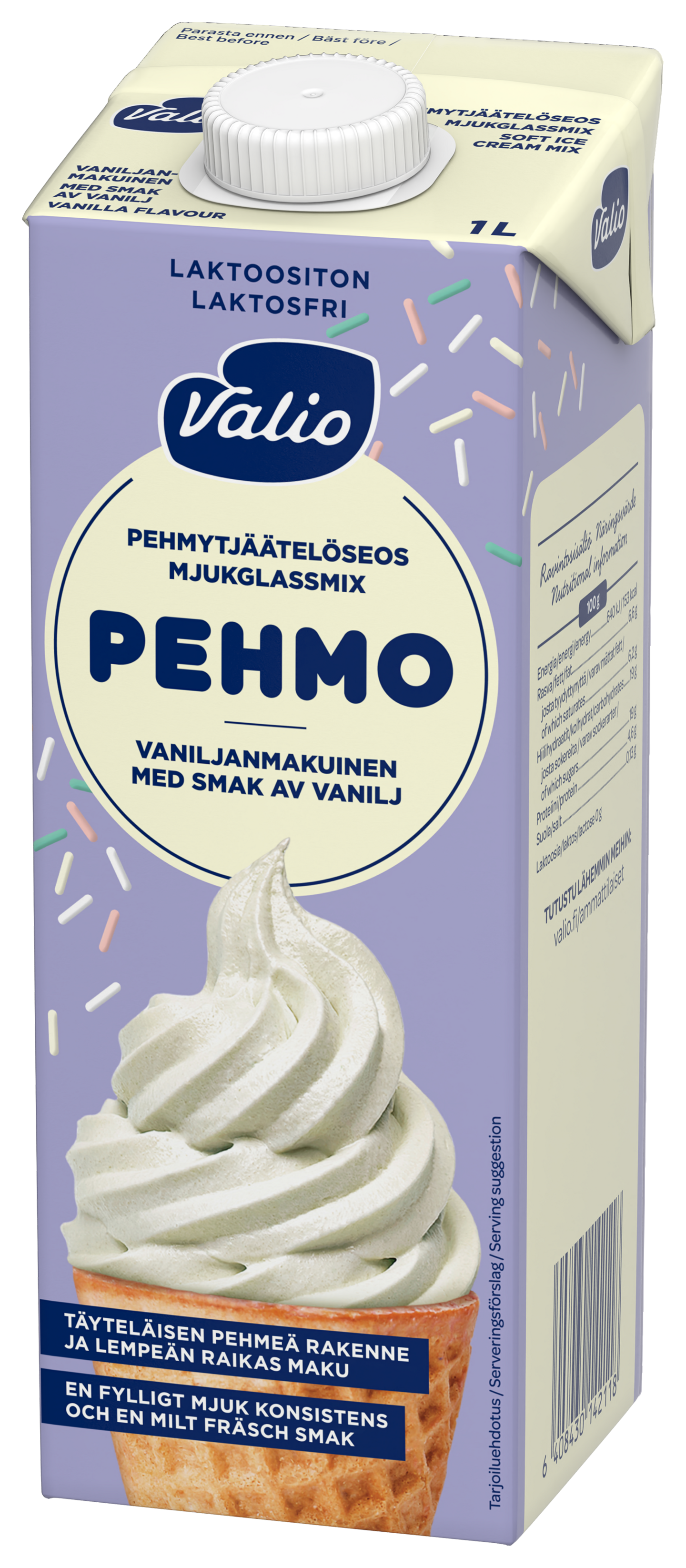 LaktoositonValio Pehmo pehmytjäätelöseoksesta valmistat ihanan vaniljaiset pehmytjäätelöt tötteröihin tai kuppeihin. Sen lempeä raikkaus ja täyteläinen pehmeys voittavat puolelleen kovemmatkin tapaukset. Tämä Turengissa valmistettu laktoositon herkku maistuu mainiolta myös jäätelöannoksissa sekä vohvelien kaverina. Litran pakkauksesta tulee n. 6 annosta.