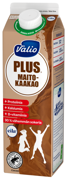 Valio Plus™ maitokaakaojuoma on helppo valita osaksi terveellistä ruokavaliota. Maukas juoma sopii hyvin välipalahetkiin ja maistuu kaiken ikäisille. Valio Plus™ maitokaakaojuoma sisältää runsaasti hyvälaatuista maitoproteiinia, kalsiumia ja D-vitamiinia. Se on maultaan hieman vähemmän makea, sillä se sisältää 30 % vähemmän sokeria verrattuna tavanomaisiin maustettuihin maitojuomiin. Juomaan käytetty kaakaoraaka-aine on Rainforest Alliance -vastuullisuussertifioitua.