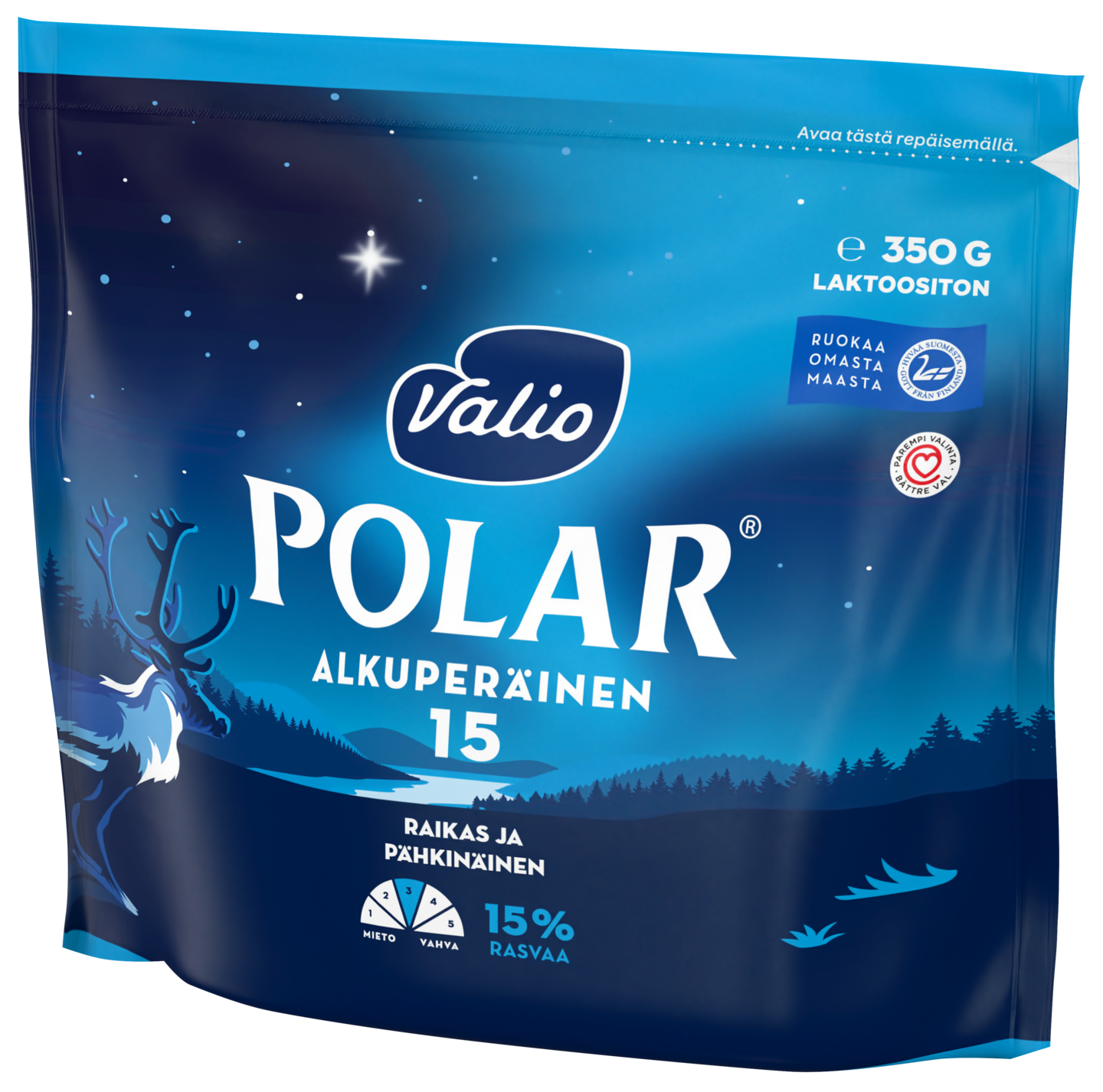 LaktoositonValio Polar® on omaleimainen asennejuusto. Siinä yhdistyvät pohjoinen elämä ja vahvuus tavalla, johon tavalliset juustot eivät pysty. Valio Polar® Alkuperäinen 15 % on luonteikas ja pähkinäinen juusto, joka maistuu valmiina viipaleina leivän päällä ja sellaisenaan naposteltuna. Valio Polar® on saanut innoituksensa pohjoisesta luonnosta, joka ei tunne kompromisseja. Se on juusto, jonka maku on samaan aikaan voimakas ja lempeä. Saatavilla palana ja viipaleina.