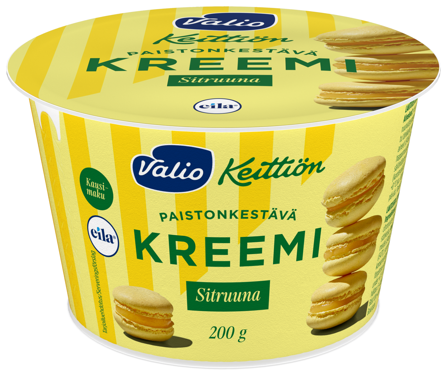 LaktoositonTäyteläinen ja ihanasti kirpeänmakea Valio Keittiön sitruunakreemi vie kielen mennessään! Käyttövalmis ja paistonkestävä sitruunainen kreemi on herkullinen oikotie helpompiin piirakoihin, kekseihin, pulliin ja jälkiruokiin. Se sopii myös kuorrutteeksi sellaisenaan kakkujen päälle. Kokeile myös turkkilaisen jogurtin kanssa. Valio Keittiön sitruunakreemi on laktoositon ja kananmunaton tuote. Löydät sen kaupan kylmähyllystä. Valio Keittiön avulla keittiössä on helpompi onnistua ja innostua! Tutustu maukkaisiin resepteihin!