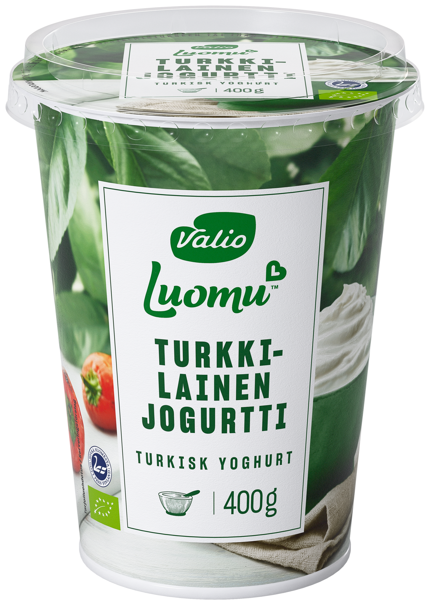 Valio Luomu™ turkkilainen jogurtti on luomumaidosta valmistettua, paksua ja lempeän täyteläistä jogurttia, joka sopii yhtä hyvin dippeihin, tzatzikiin, alkuruokiin, kastikkeisiin, jälkiruokiin ja leivontaan. Marjojen, myslin, pähkinöiden tai hunajan kanssa saat siitä ihanan aamu-, ilta- tai välipalan. Lisää lämpimiin ruokiin valmistuksen loppuvaiheessa. Valio Luomu™ on kestävä valinta luonnon monimuotoisuuden puolesta. Tutustu myös muihin Valio Luomu™ tuotteisiin!