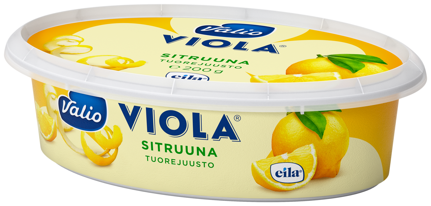 Valio Viola® sitruuna on raikkaan sitruksinen tuorejuusto, joka saa makunsa aidoista sitruunoista ja sitruunankuoresta. Se sekoittuu leivonnassa kauniisti erilaisiin taikinoihin ja massoihin ja tuo kirpeää raikkautta esimerkiksi juustokakkuihin ja kuorrutuksiin. Sopii erinomaisesti leivontaan ja jälkiruokiin ja levittyy pehmeästi myös paahtoleivän tai keksin päälle. Kaikki Valio Viola® tuorejuustot ovat laktoosittomia ja sopivat arkeen ja juhlaan. Valikoimasta löydät suolaiset, makeat ja kevyet vaihtoehdot.