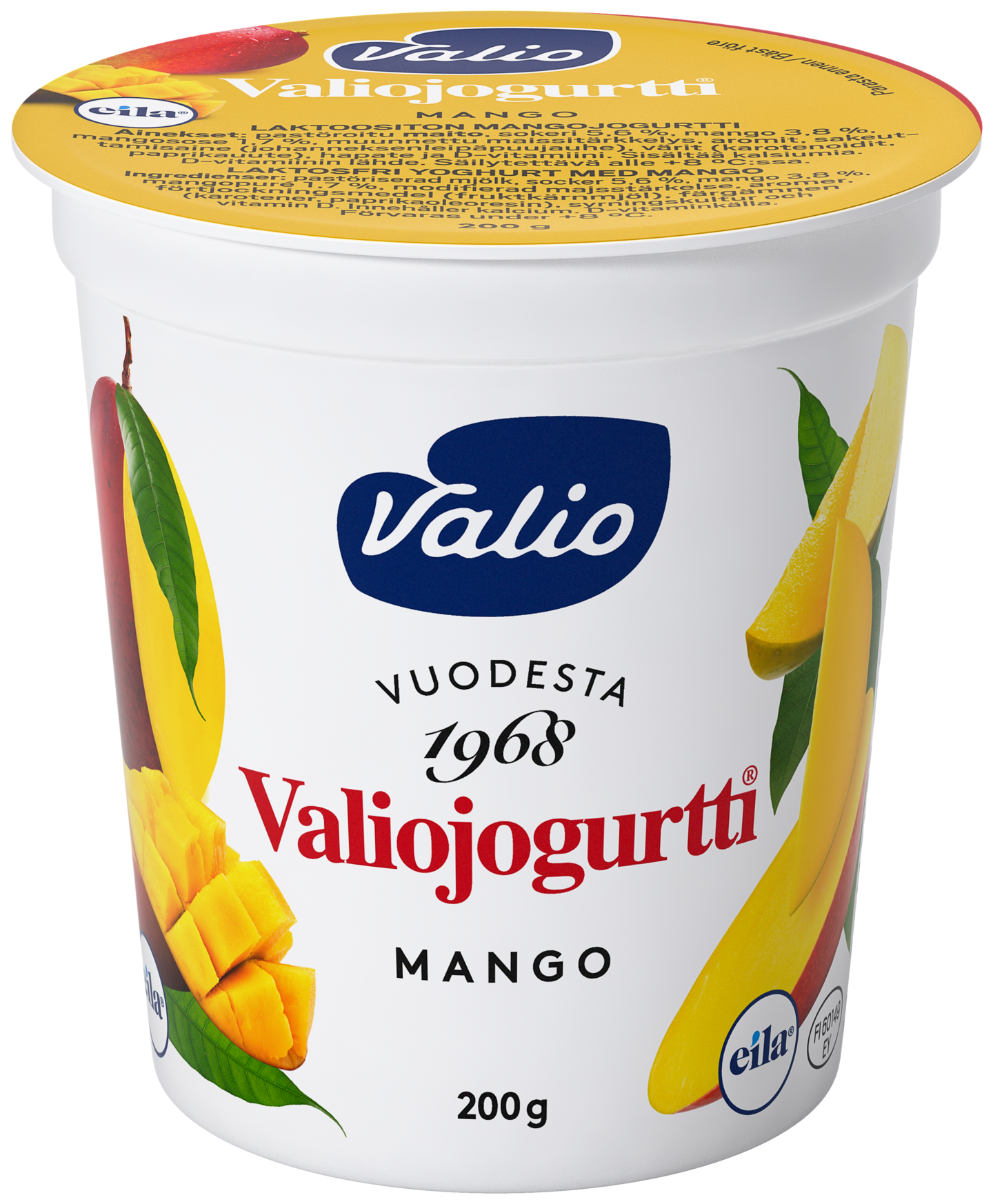 LaktoositonValiojogurtti® on klassikko jo vuosien takaa ja yhä edelleen Suomen suosituin jogurtti. Pehmeä ja täyteläinen Valiojogurtti® maistuu juuri niin hyvältä kuin lapsuudessakin. Valiojogurtti® mango maistuu aurinkoisen hedelmäiseltä ja lempeältä. Koko Valiojogurtti® tuoteperhe on laktoositon. Vanhojen tuttujen makujen rinnalle tulee jatkuvasti myös uusia makuja kuten vaihtuvat Makuja maailmalta -jogurtit.