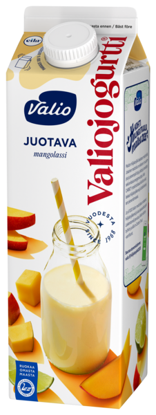 LaktoositonValiojogurtti®, kaikkien tuntema klassikko, on saatavilla myös juotavana välipalana! Isosta pakkauksesta riittää useampaankin lasilliseen. Mangolassin makuinen Valiojogurtti® juotava on kiinnostava yhdistelmä inspiraatiota kansainvälisistä keittiöistä ja lempeää, koko perheelle sopivaa makumaailmaa. Nappaa mukaan kylmähyllystä ja juo sellaisenaan tai käytä monipuolisesti välipalana murojen, myslin, marjojen tai hedelmien kanssa. Valiojogurtti® juotava mangolassin samettinen maku syntyy suomalaisesta maidosta sekä raikkaista hedelmistä. Koko Valiojogurtti® tuoteperhe on laktoositon.