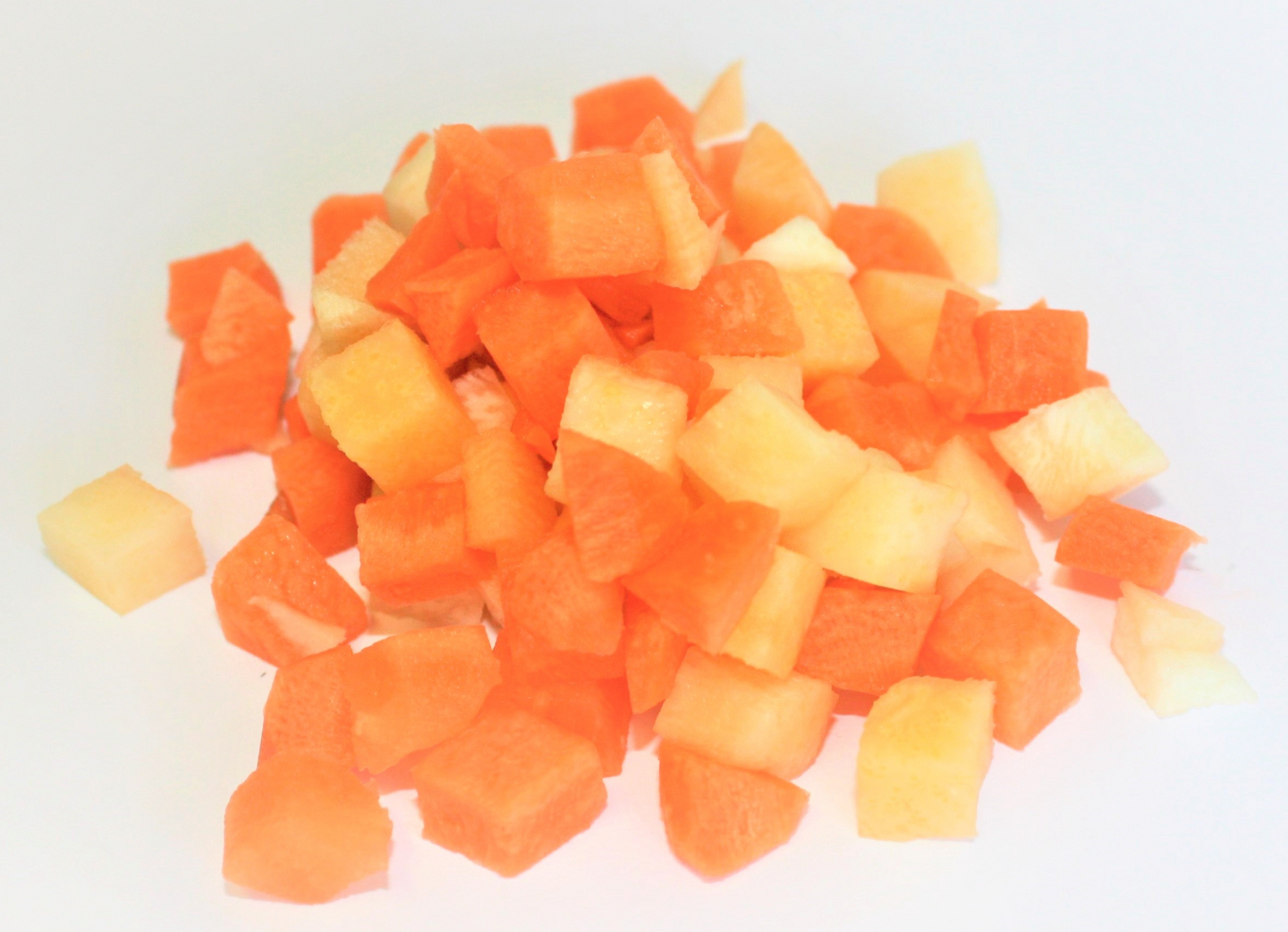Valmix Juureskuutio on rouheasti leikattua porkkanaa, lanttua ja palsternakkaa. Kooltaan kuutio on noin 1 x 1 x 1 cm. Palsternakan hapettumisenestoaine: sitruunahappo, askorbiinihappo.