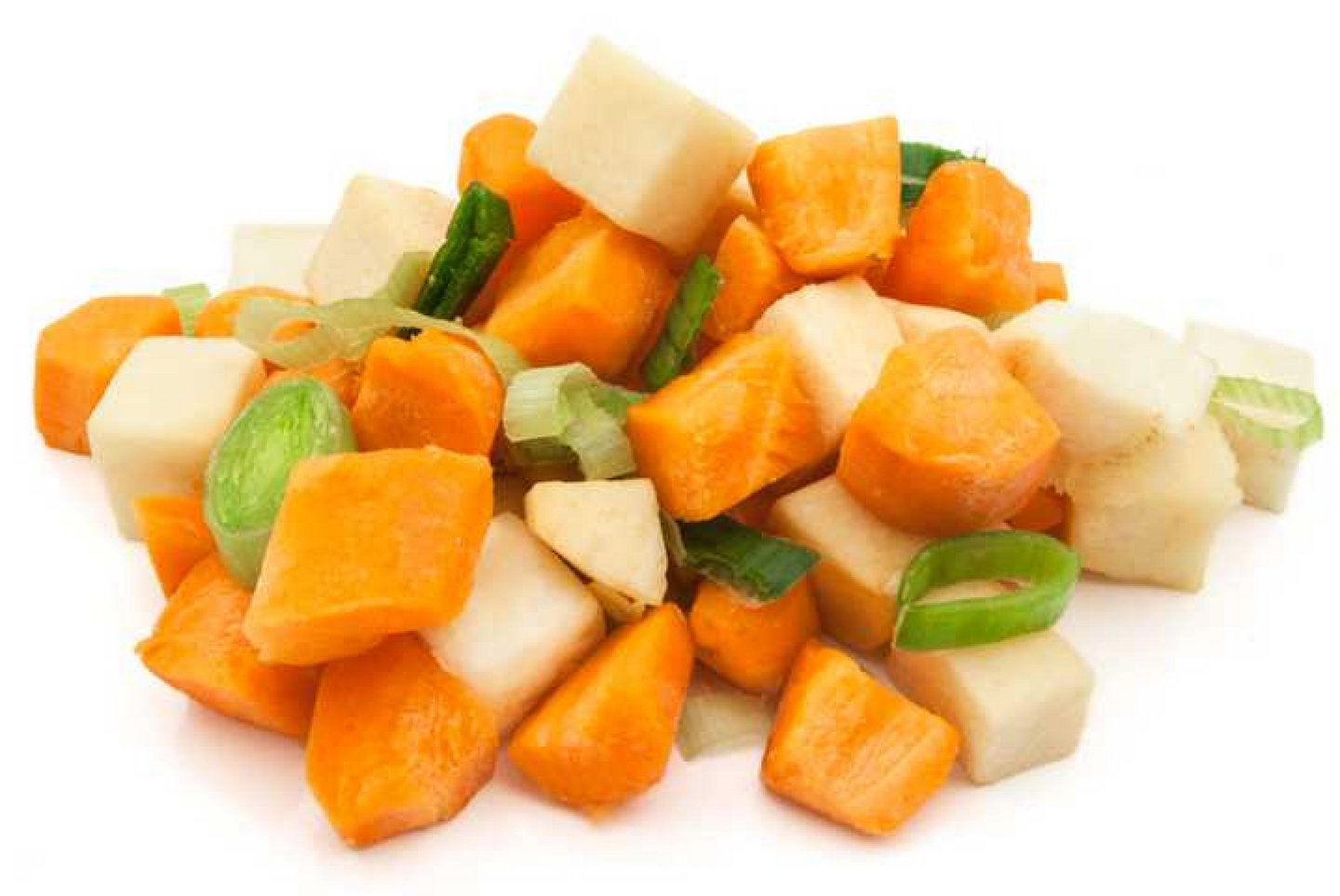 Valmix Keittojuureskuutio on rouheasti leikattua porkkanaa, lanttua, palsternakkaa ja purjoa. Kooltaan kuutio on noin 1,5 x 1,5 x 1,5 cm. Palsternakan hapettumisenestoaine: sitruunahappo, askorbiinihappo.