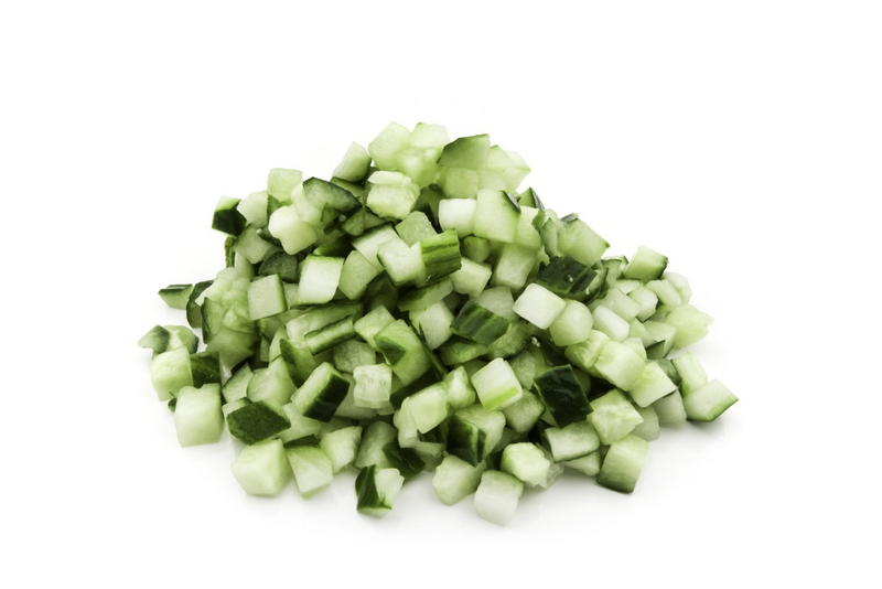 Valmix Kurkkukuutio on tuoretta kurkkua kuutioituna. Kuution koko noin 0,8 x 0,8 cm.