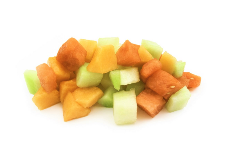 Valmix Melonikuutio mix on herkullinen ja helppokäyttöinen melonisekoitus, jossa on vesimelonia, hunajamelonia ja cantaloupemelonia kuutioina. Palakoko noin 2 x 2 x 2 cm.