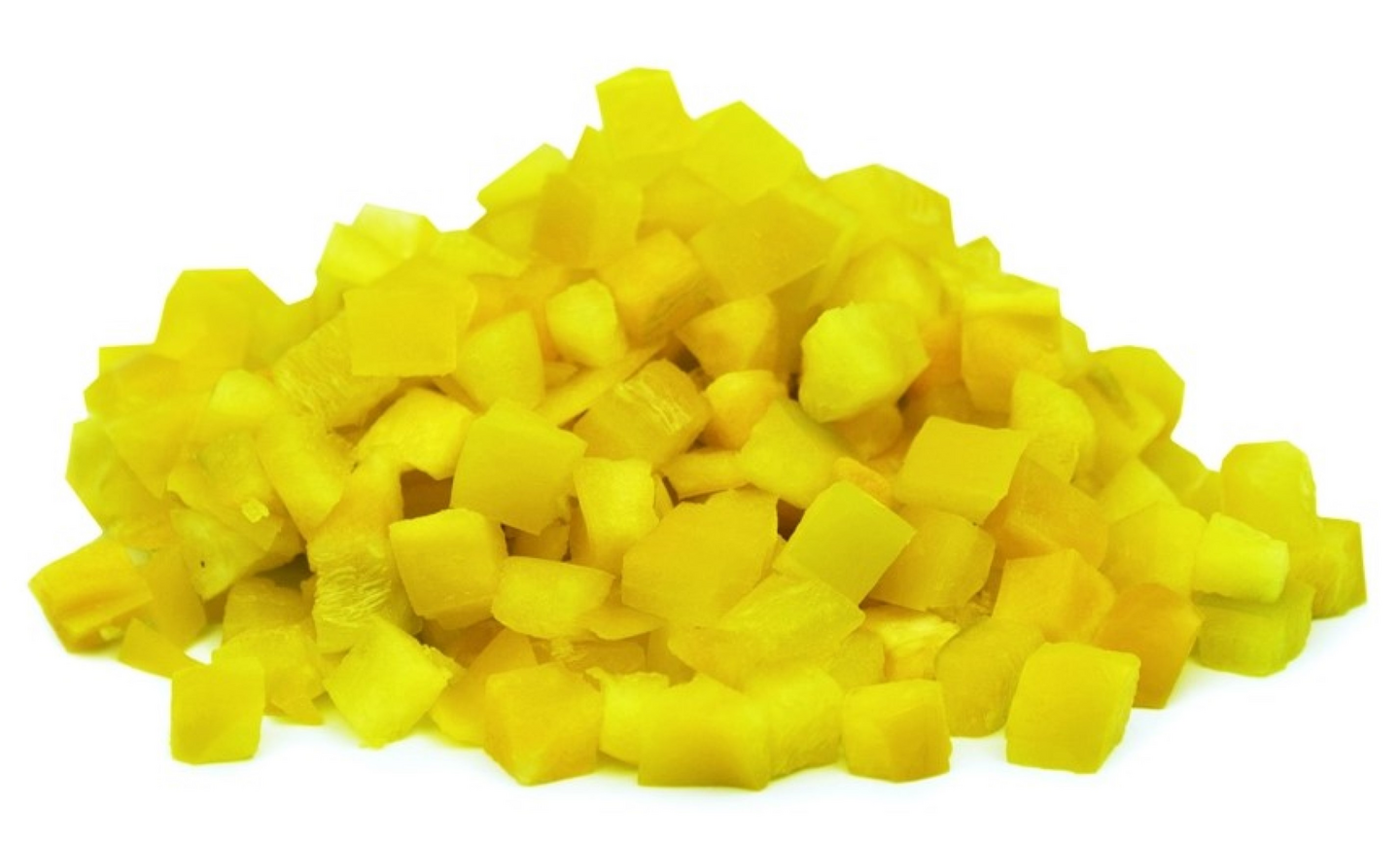 Valmix Paprikakuutio 10mm keltainen on tuoretta keltaista paprikaa kuutioituna, kooltaan noin 1 x 1 cm.