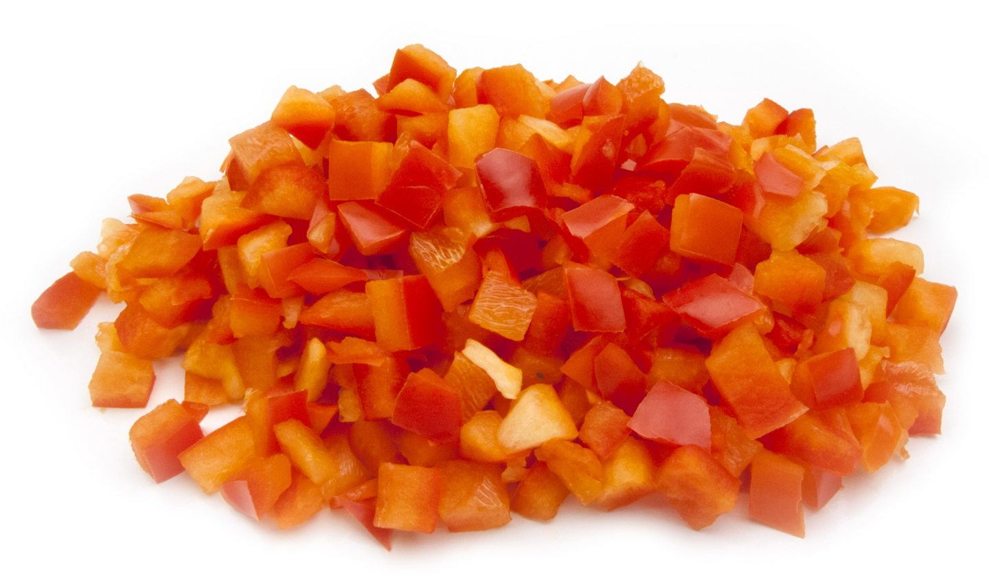 Valmix Paprikakuutio 10mm punainen on tuoretta punaista paprikaa kuutioituna, kooltaan n. 1 x 1 cm.