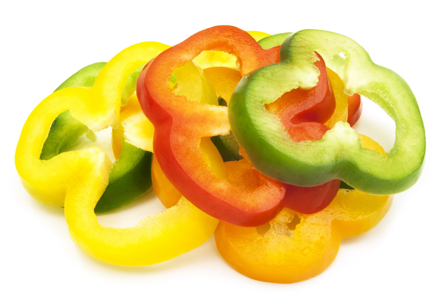 Valmix Paprikarengas mix on tuoretta punaista, keltaista ja vihreää paprikaa renkaan muotoon leikattuna, paksuus noin 0,6 - 1 cm.