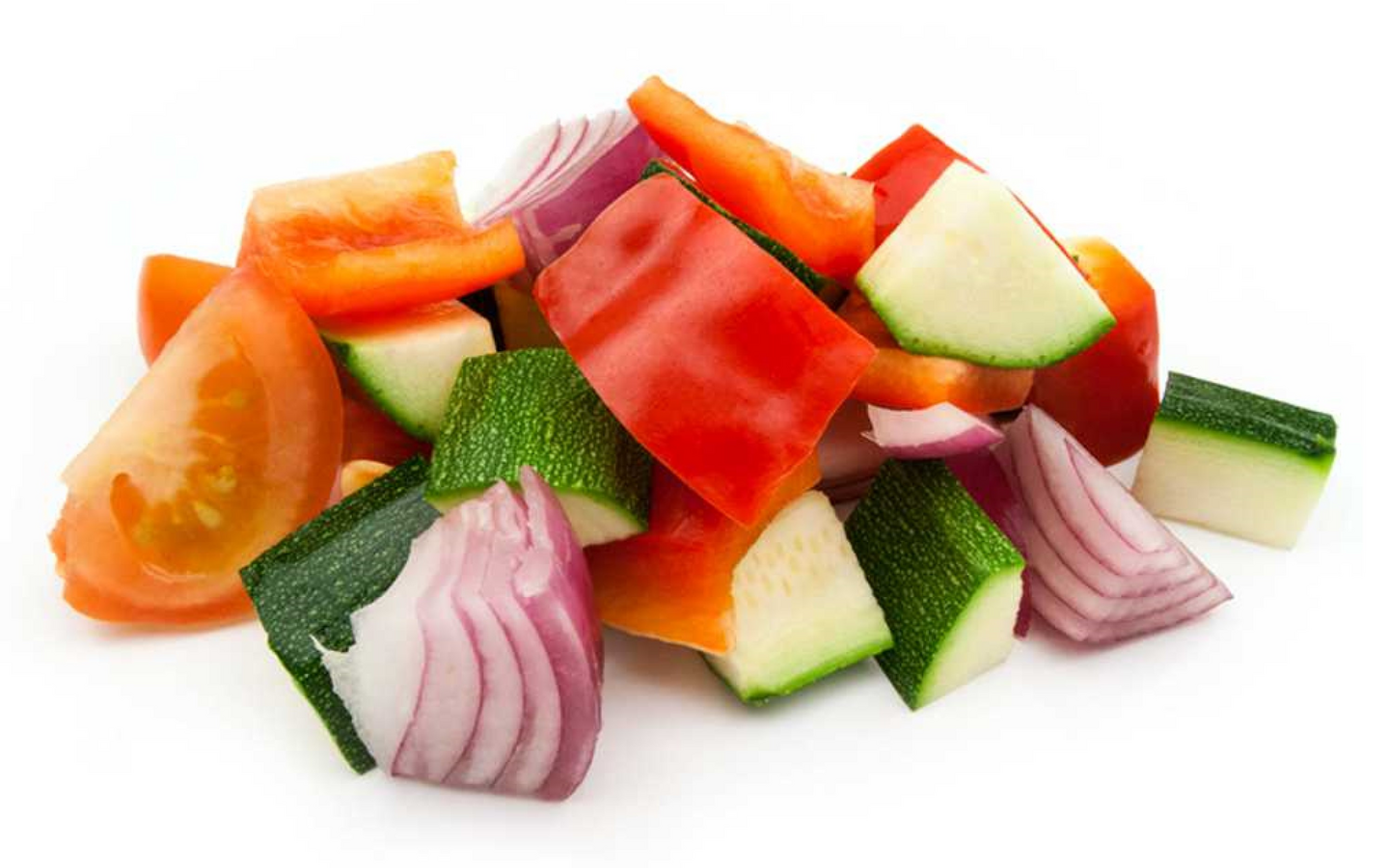 Zuccini, paprika, punasipuli, tomaatti