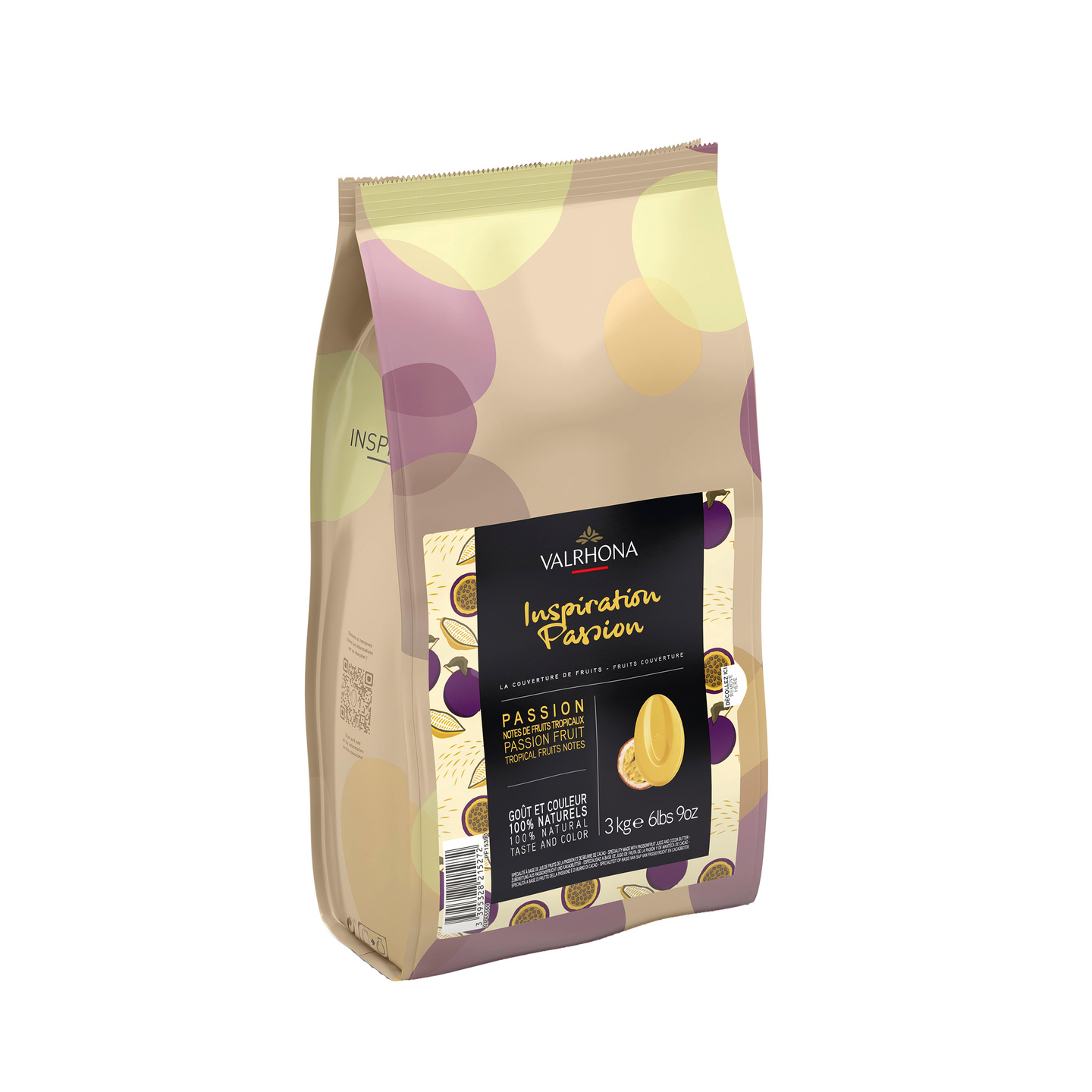 sokeri, kaakaovoi 32,8 %, kuivattu passionhedelmämehu 17,3 % (sokeri, passionhedelmä), emulgointiaine (auringonkukkalesitiini). Saattaa sisältää pieniä määriä maitoa, pähkinää, soijaa ja gluteenia.