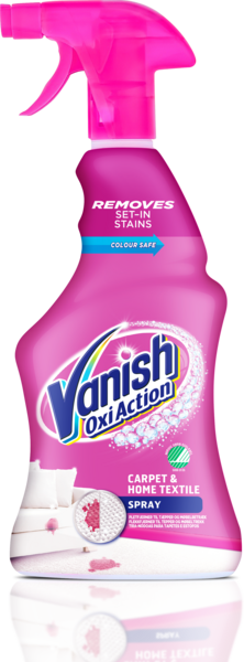 Vanish Oxi Action mattojen puhdistussuihke poistaa tahrat heti ensimmäisellä käsittelykerralla. Vanishin tahranpoisto-ominaisuudet poistavat nyt sitkeät läiskät ja tahrat matoistasi ja huonekalujen verhoilukankaista turvallisesti ja tehokkaasti.Luota pinkkiin ja sano hyvästi tahroille!