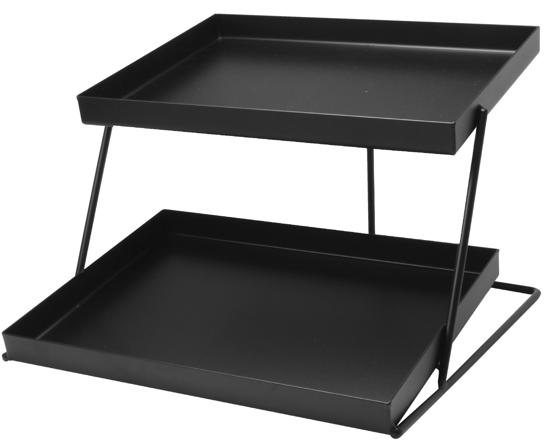 Varmatek 2-tasoinen koriteline on käytännöllinen ratkaisu ammattikeittiöihin ja tarjoiluun. Mustaksi maalatusta teräksestä valmistettu teline on kestävä ja helppo pitää puhtaana käsitiskiaineella ja kostutetulla mikrokuituliinalla.