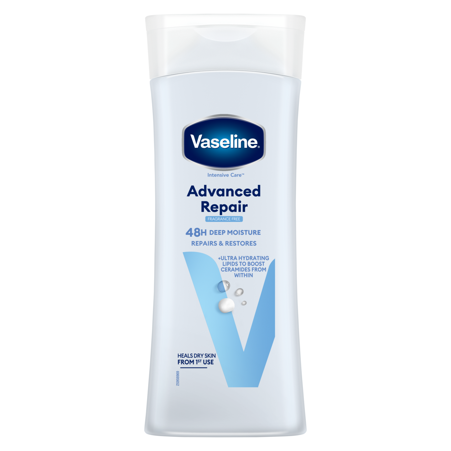 Vaseline Intensive Care Advanced Repair -vartalovoiteen hajusteeton koostumus sisältää tehokkaita kosteuttajia, kuten glyseriiniä, joka vetää kosteutta ihoon ja sitoo sen sinne, sekä Vaseline Jelly -mikropisaroita, jotka lukitsevat kosteuden ihoon. Näiden syväkosteuttavien ainesosien yhdistelmä tarjoaa nopean helpotuksen kuivalle iholle ja sopii myös herkälle iholle.