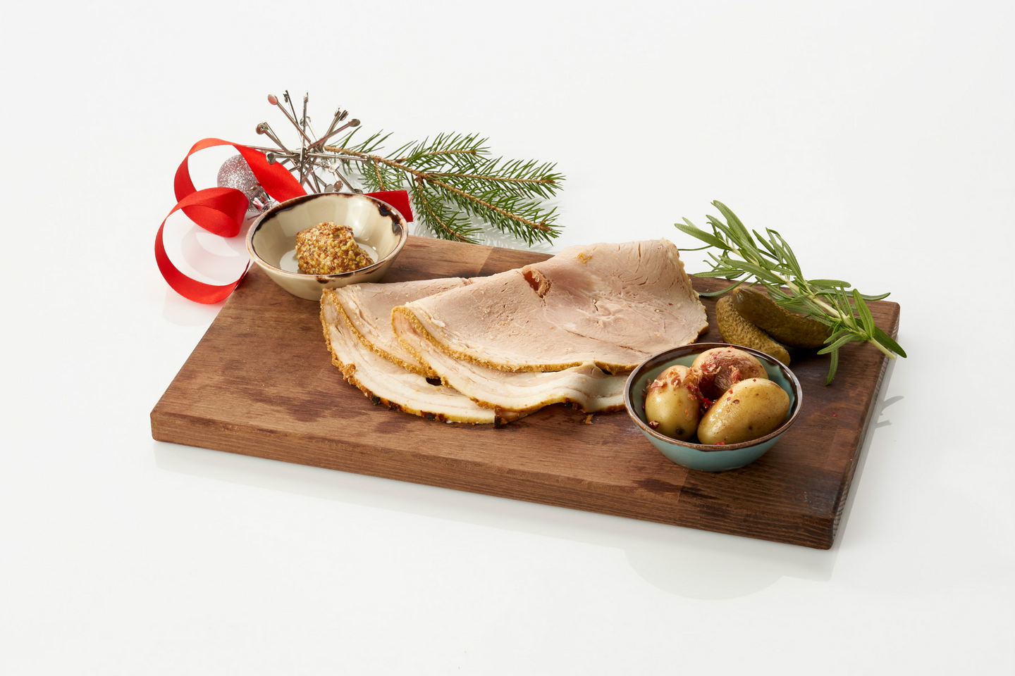 Tarjoiluvalmis perinteinen joulukinkku valmiiksi viipaloituna