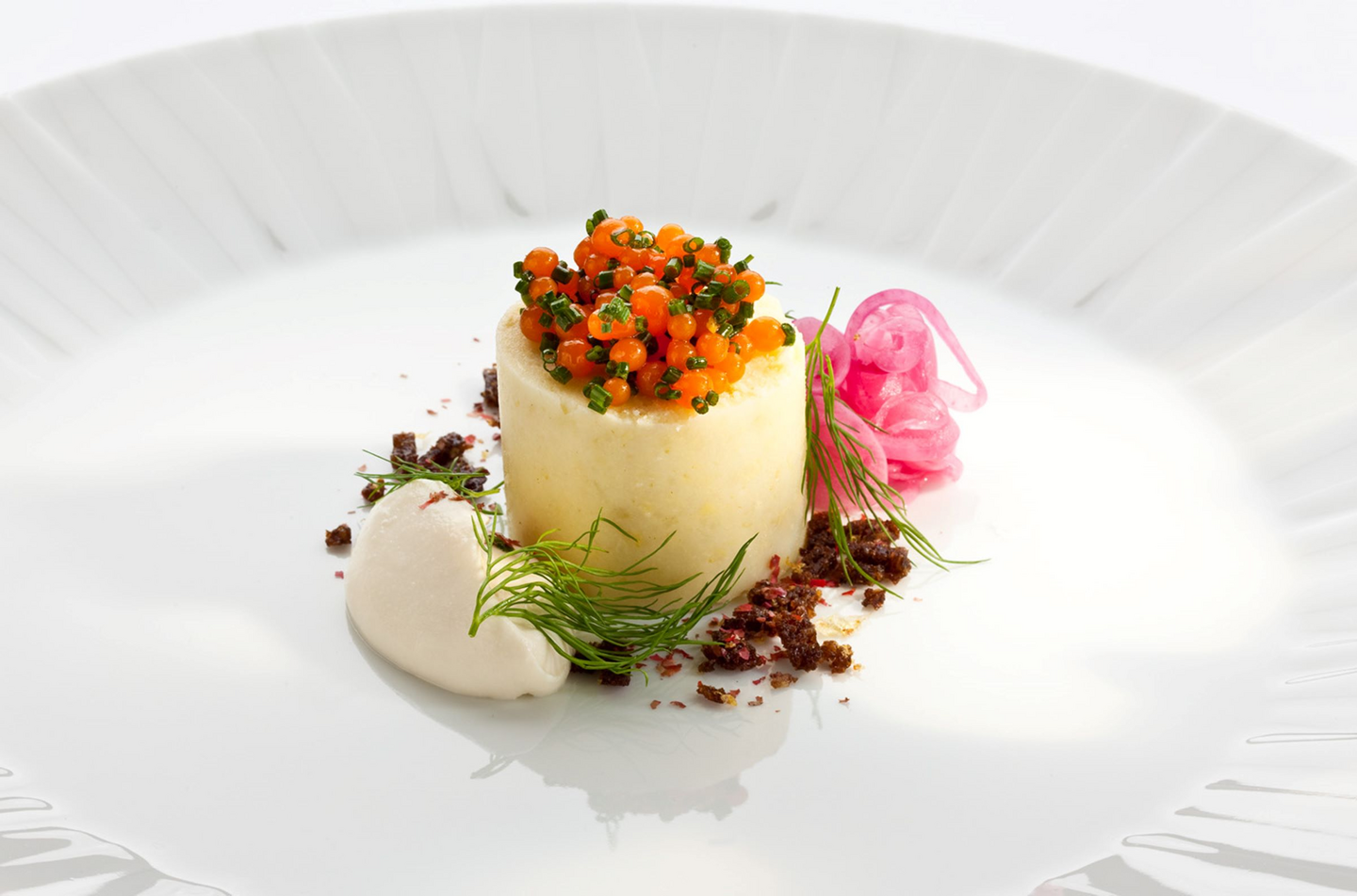 Perunaterriini, joka tarjoillaan lämmitettynä annoksessa tai noutopöydästä.