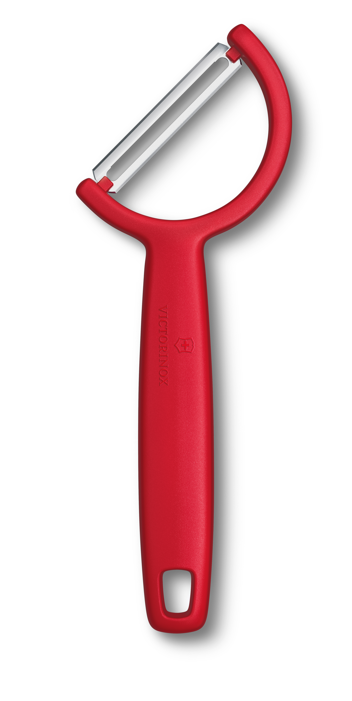 Rho-kuorijan äärimmäisen terävä, ruostumattomasta teräksestä valmistettu terä on asetettu 45°:n kulmaan, mikä vähentää ranteen väsymistä isoja määriä kuorittaessa. Yksipuolinen suora terä on ihanteellinen pitkien, kovakuoristen vihannesten (esim. porkkana, kurkku) kuorimiseen. Kääntyvyyden ansiosta terä mukautuu kuorittavan raaka-aineen pinnanmuotoihin, mikä tekee kuorimisesta tehokasta ja nopeaa. Terä myös kuorii läheltä pintaa, jolloin hävikkiä syntyy vähemmän. Kuorija on Sveitsissä valmistettu, astianpesukoneen kestävä, ja säilyttää terävyytensä pitkään. Yksipuolisen viiston terän vuoksi kuorija sopii vain oikeakätisille.