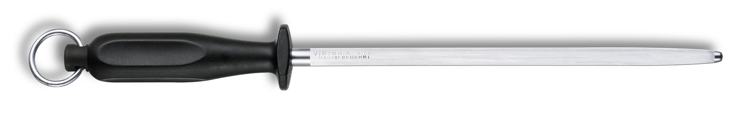 Kromipinnoitetusta teräksestä valmistettu pyöreä Swiss Classic -teroituspuikko keittiöveitsien säännölliseen ja nopeaan terävyyden ylläpitoon eli hoonaukseen. Soveltuu terille, joiden kovuus on enintään 65 HRC. Keskihieno karkeus. Ei sovellu astianpesukoneeseen. - Teroitusosan pituus 25 cm.
