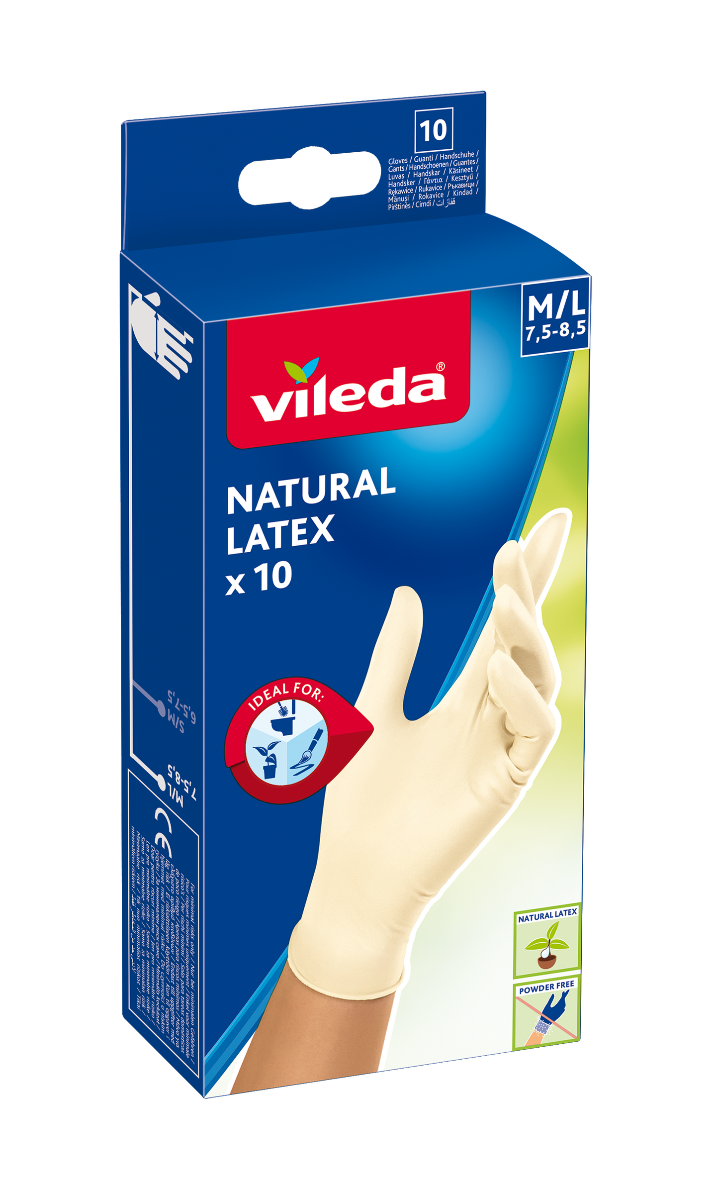 Vileda Natural Latex käsineet on valmistettu luonnonkumista ja ne ovat puuteroimattomat ja hellävaraiset kertakäyttökäsineet, jotka takaavat optimaalisen suojan ja parhaan hygienian käsillesi. Nämä joustavat ja monikäyttöiset käsineet on valmistettu 100% luonnonkumista ja ne käyvät molempiin käsiin, antaen erinomaisen tuntoherkkyyden kuin ne olisivat toinen iho. Pakkausessa on 10 kappaletta. Koko M/L.