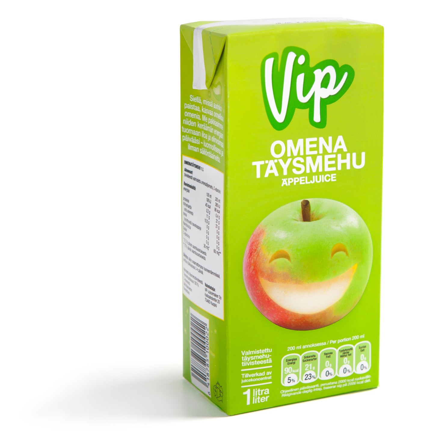 Luonnollinen ja raikas Vip omenatäysmehu on C-vitaminoitu, säilöntäaineeton ja sisältää vain hedelmän omaa sokeria. Täysmehupitoisuus on 100%.