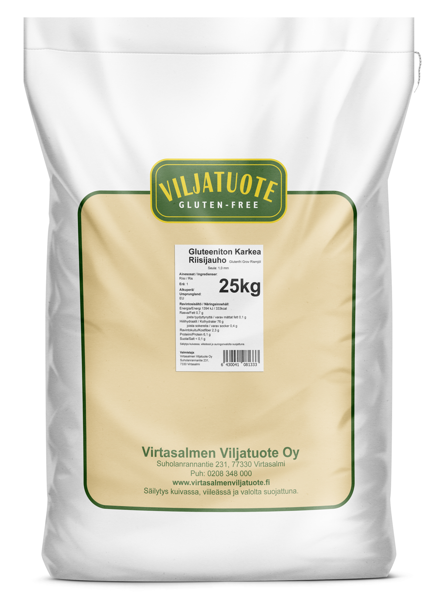 Virtasalmen Viljatuote gluteeniton karkea riisijauho 25kg